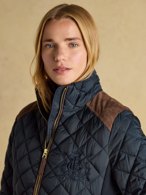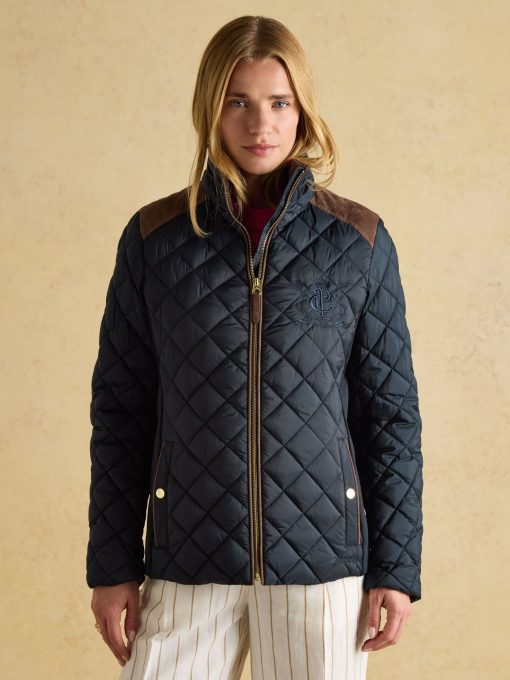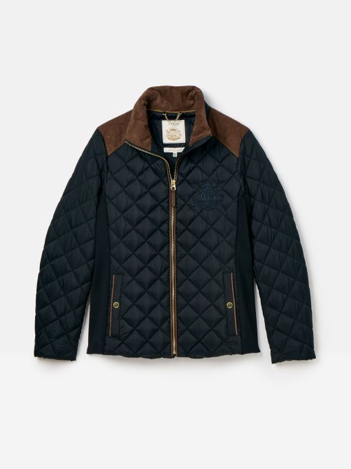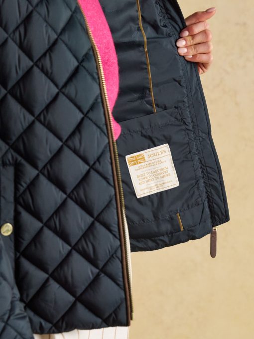 Joules Women’s Braemar Luxe Navy Blue Showerproof Diamond Quilted Coat | Navy Blue