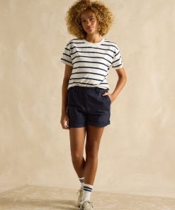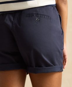 Our chino shorts are a style that should hold space in every spring and summer wardrobe. They've been a favourite for many seasons and many reasons. They sit mid-thigh for a flattering fit and have a mid-rise waist with elastication. The cotton blend fabric has a brushed fabric finish and a peached handle from added modal, which makes it soft to touch. The colour is perfect for the season, and the hems can be rolled up or down as you fancy. They have a two-way stretch for added comfort, a full zip and fly fastening, side entry pockets, two welt pockets to the back, and belt loops to help you accessorise in style. Brushed fabric finish for a soft hand-feel Peached handle from added modal Two-way stretch for added comfort Elasticated waist Mid-thigh length Mid-rise waist Belt loops Zip and fly fastening Side pockets Rear welt pockets with button detail Machine washable