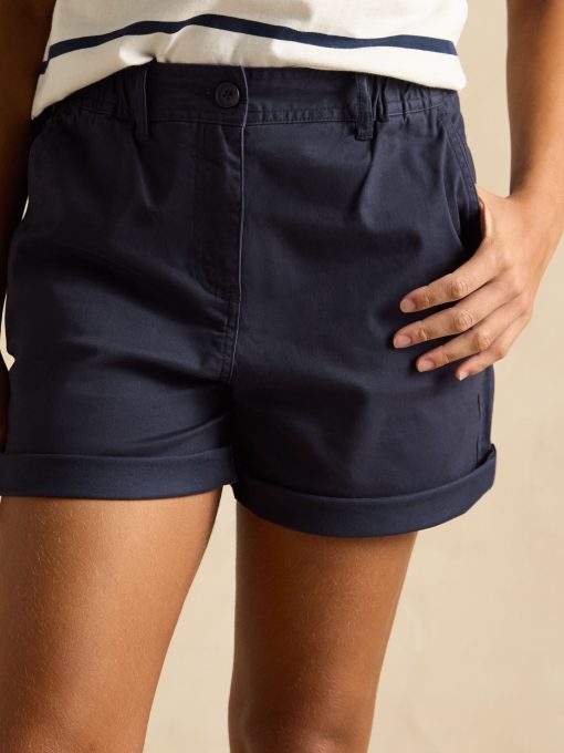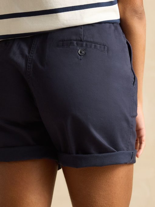 Our chino shorts are a style that should hold space in every spring and summer wardrobe. They've been a favourite for many seasons and many reasons. They sit mid-thigh for a flattering fit and have a mid-rise waist with elastication. The cotton blend fabric has a brushed fabric finish and a peached handle from added modal, which makes it soft to touch. The colour is perfect for the season, and the hems can be rolled up or down as you fancy. They have a two-way stretch for added comfort, a full zip and fly fastening, side entry pockets, two welt pockets to the back, and belt loops to help you accessorise in style. Brushed fabric finish for a soft hand-feel Peached handle from added modal Two-way stretch for added comfort Elasticated waist Mid-thigh length Mid-rise waist Belt loops Zip and fly fastening Side pockets Rear welt pockets with button detail Machine washable