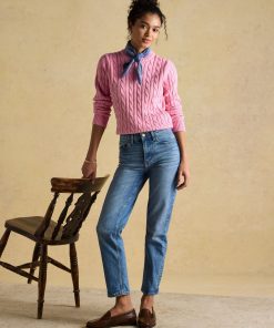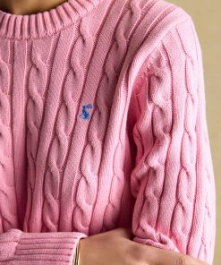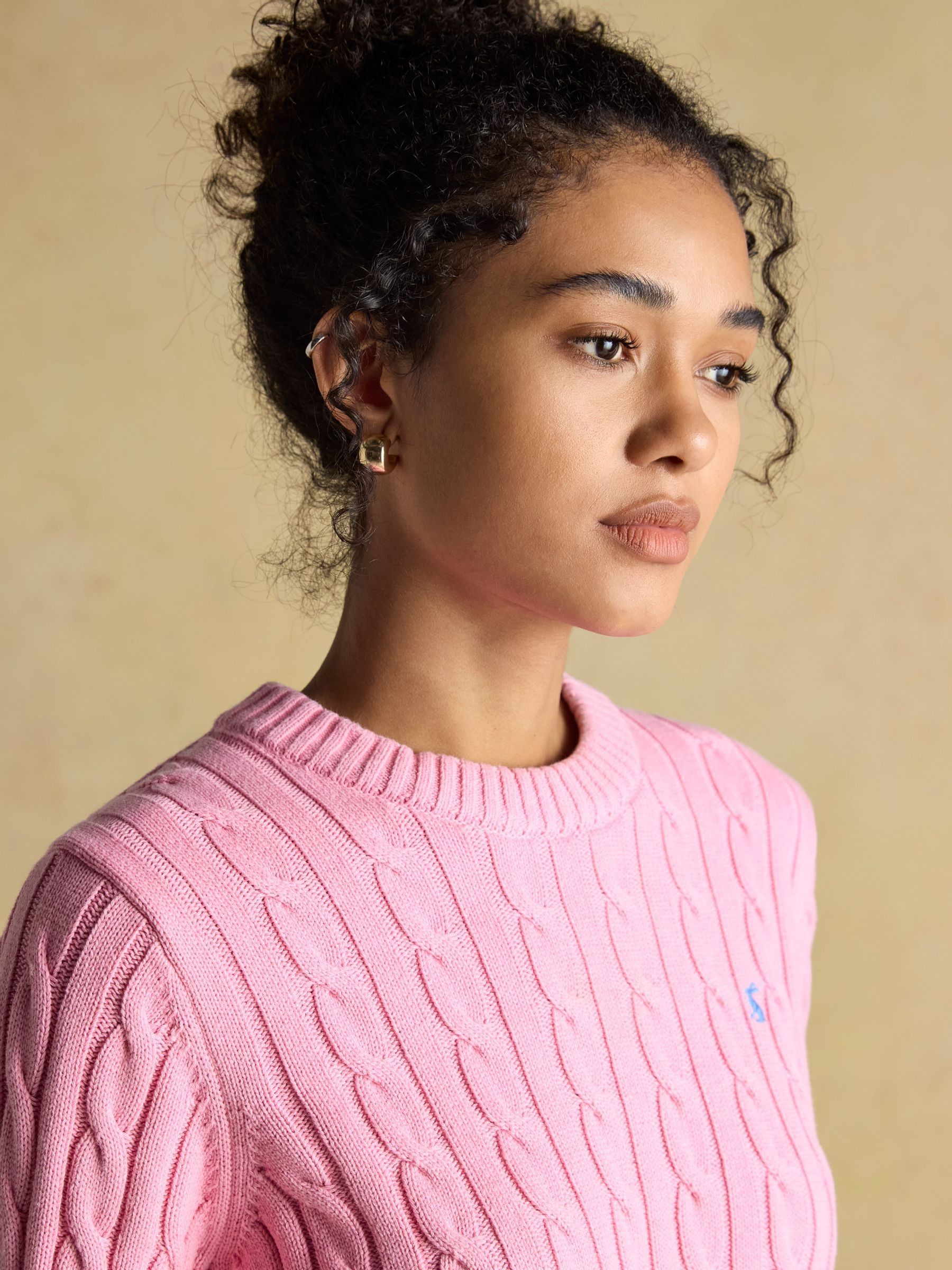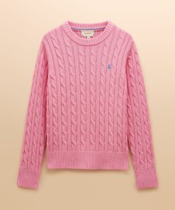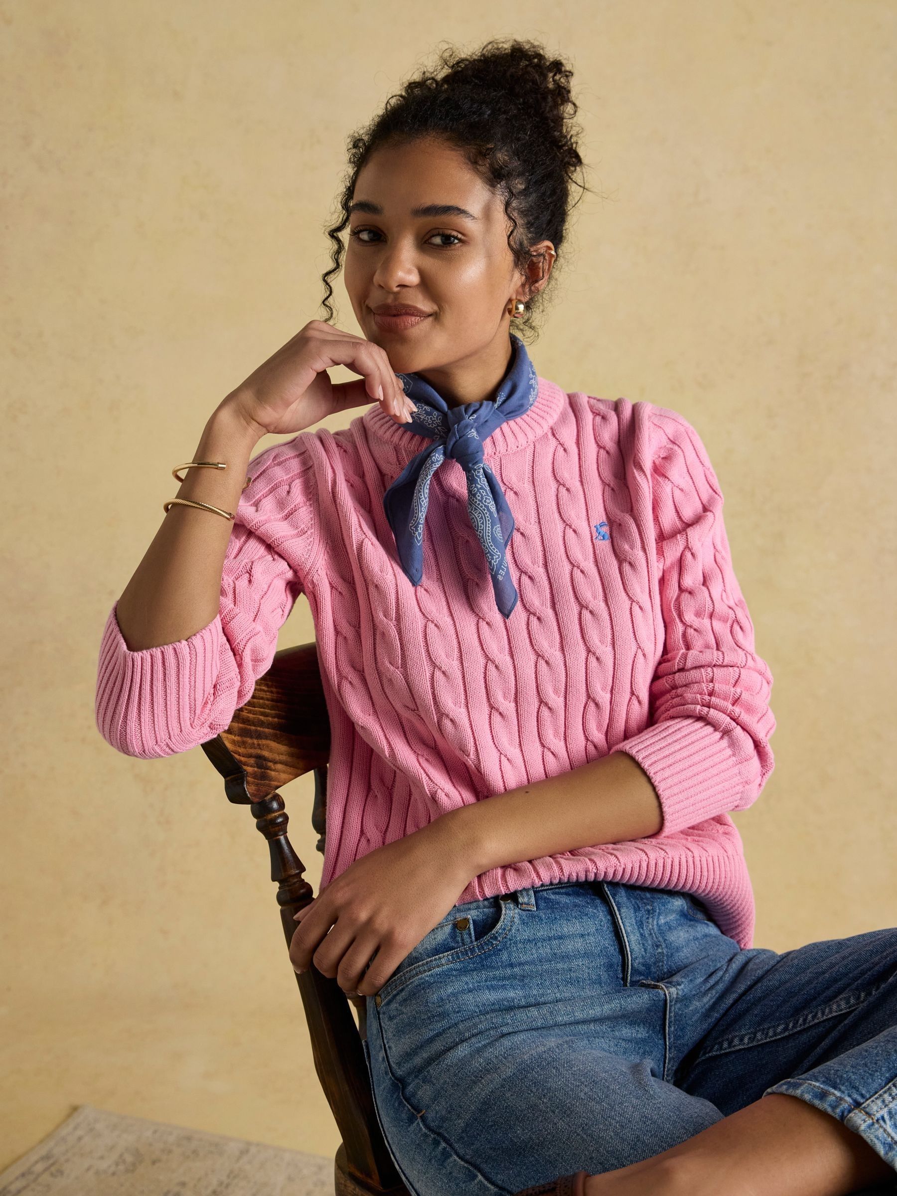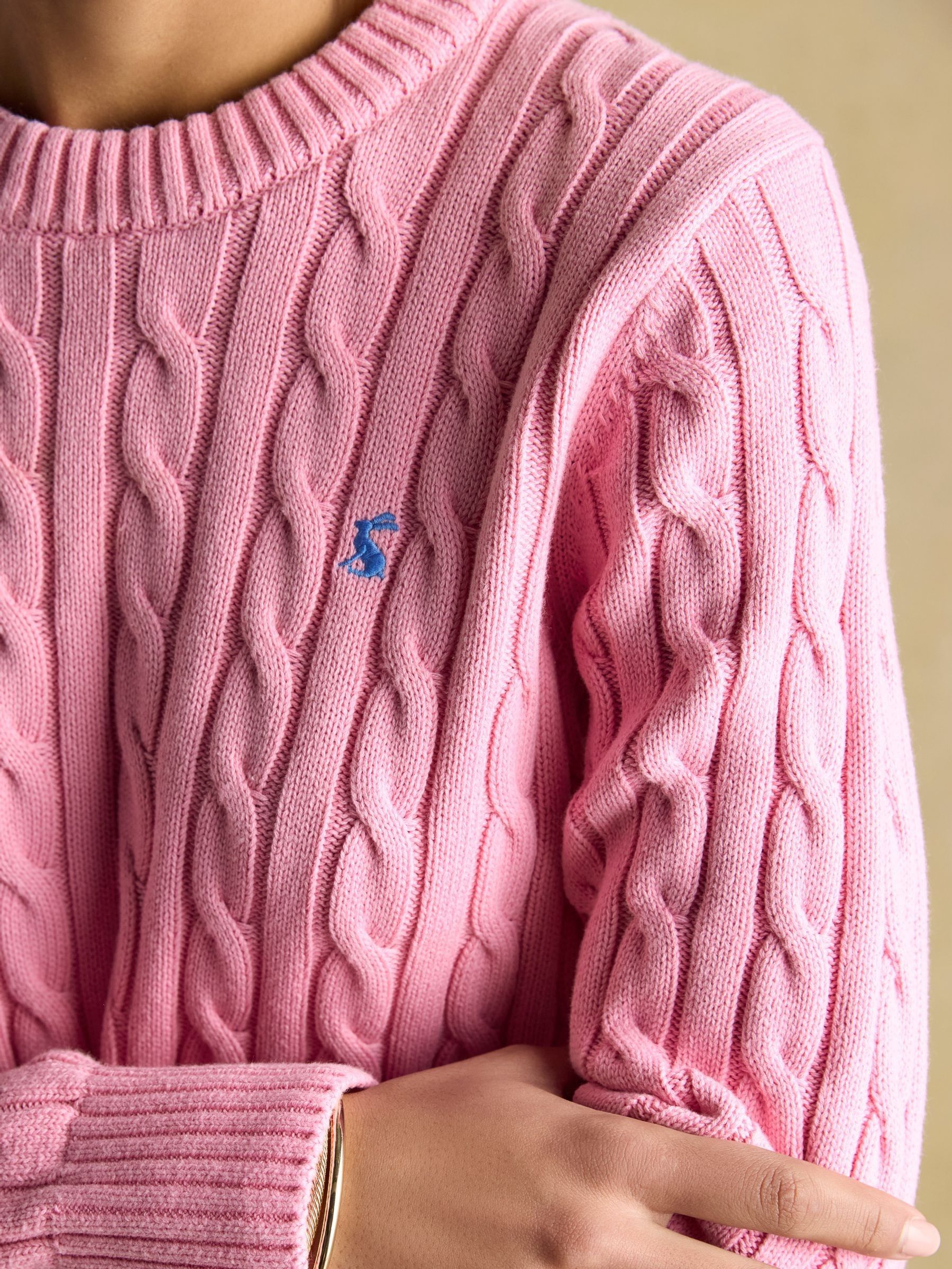 Our refined cable knit jumper will elevate your wardrobe with its classic aesthetic. Crafted to a regular fit from 100% cotton, it features ribbed trims and is tastefully finished with our iconic embroidered hare at the chest, it's the perfect transitional piece to see you through the seasons. Try styling this crew neck with a shirt or a T-shirt underneath or wear it alone for a preppy finish. 100% cotton Crew neck Long sleeves Ribbed trims Contrast the back neck stripe Embroidered hare at chest.