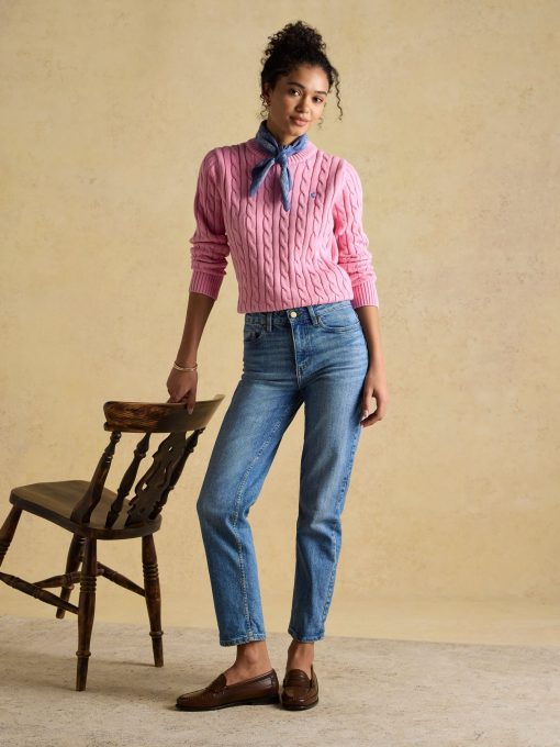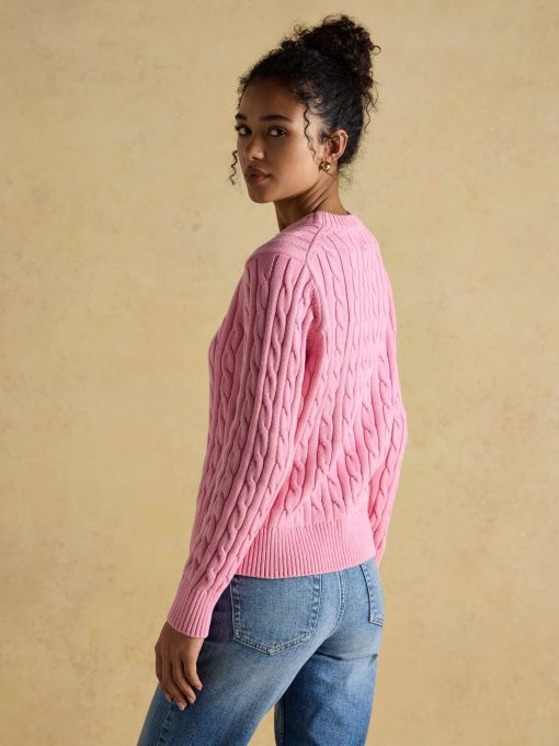 Our refined cable knit jumper will elevate your wardrobe with its classic aesthetic. Crafted to a regular fit from 100% cotton, it features ribbed trims and is tastefully finished with our iconic embroidered hare at the chest, it's the perfect transitional piece to see you through the seasons. Try styling this crew neck with a shirt or a T-shirt underneath or wear it alone for a preppy finish. 100% cotton Crew neck Long sleeves Ribbed trims Contrast the back neck stripe Embroidered hare at chest.