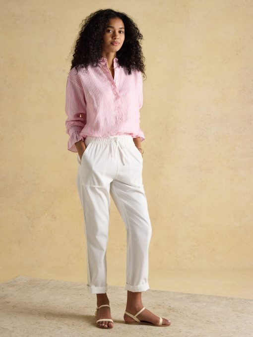 We've taken your love of chinos and given them a new fit and shape for the season. This pair has the classic brushed fabric and turn-up cuffs of a traditional chino, but a more modern relaxed fit at the waist and hips before tapering from the knee to the ankle. The elasticated waist and drawstring ties allow you to adjust and cinch the waist for a fit you're comfortable with. They're finished with side and rear pockets. Style them with Relaxed fit Tapered leg Mid-rise waist Elasticated waist Drawstring ties Turn-up cuffs Side pockets Pockets to the rear