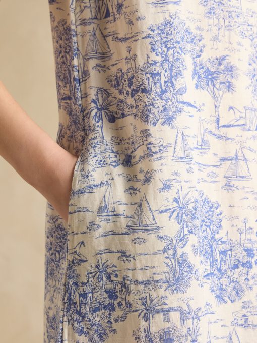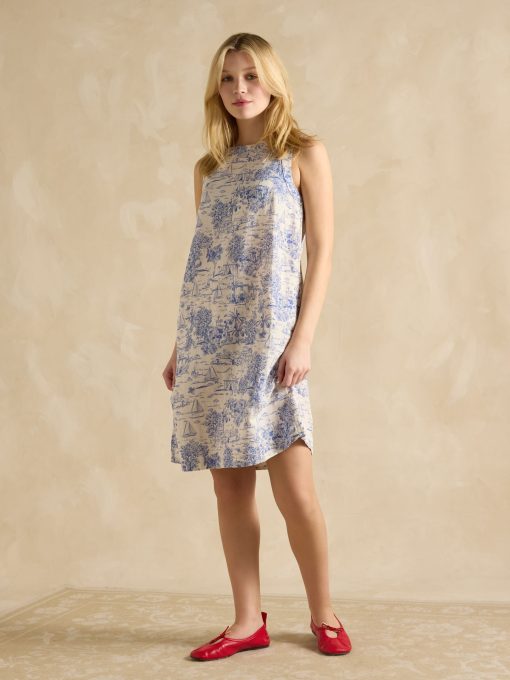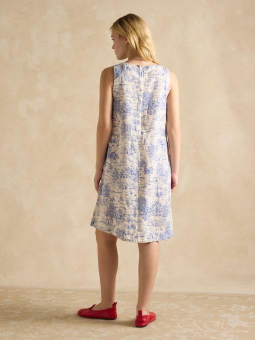 With its distinctive shape and effortless feel, the shift dress has been a resident in women's wardrobes for decades. The Delphine defines summer style, with its knee length, sleeveless design and light viscose and linen blend fabric. It has a classic boat neck, a concealed zip fastening to the centre back and comes in an assortment of prints and colour blocks to choose from. Wear with a pair of pumps or sandals for an effortless look that always delivers on style. Viscose and linen blend. Shift-style dress. Knee length. Boat neck. Sleeveless design. Concealed zip fastening to the centre back.