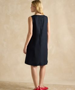 With its distinctive shape and effortless feel, the shift dress has been a resident in women's wardrobes for decades. The Delphine defines summer style, with its knee length, sleeveless design and light viscose and linen blend fabric. It has a classic boat neck, a concealed zip fastening to the centre back and comes in an assortment of prints and colour blocks to choose from. Wear with a pair of pumps or sandals for an effortless look that always delivers on style. Viscose and linen blend. Shift-style dress. Knee length. Boat neck. Sleeveless design. Concealed zip fastening to the centre back.