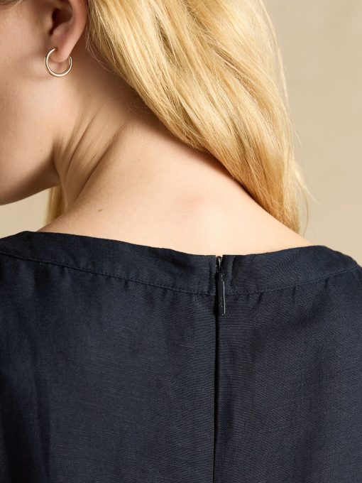 With its distinctive shape and effortless feel, the shift dress has been a resident in women's wardrobes for decades. The Delphine defines summer style, with its knee length, sleeveless design and light viscose and linen blend fabric. It has a classic boat neck, a concealed zip fastening to the centre back and comes in an assortment of prints and colour blocks to choose from. Wear with a pair of pumps or sandals for an effortless look that always delivers on style. Viscose and linen blend. Shift-style dress. Knee length. Boat neck. Sleeveless design. Concealed zip fastening to the centre back.