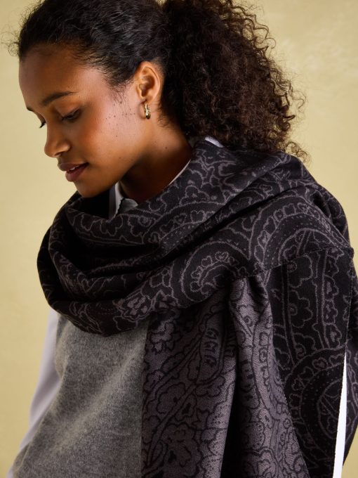 Joules Women’s Elissa Black & Grey Double-sided Jacquard Scarf | Black & Grey
