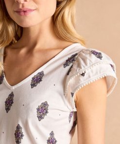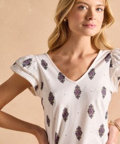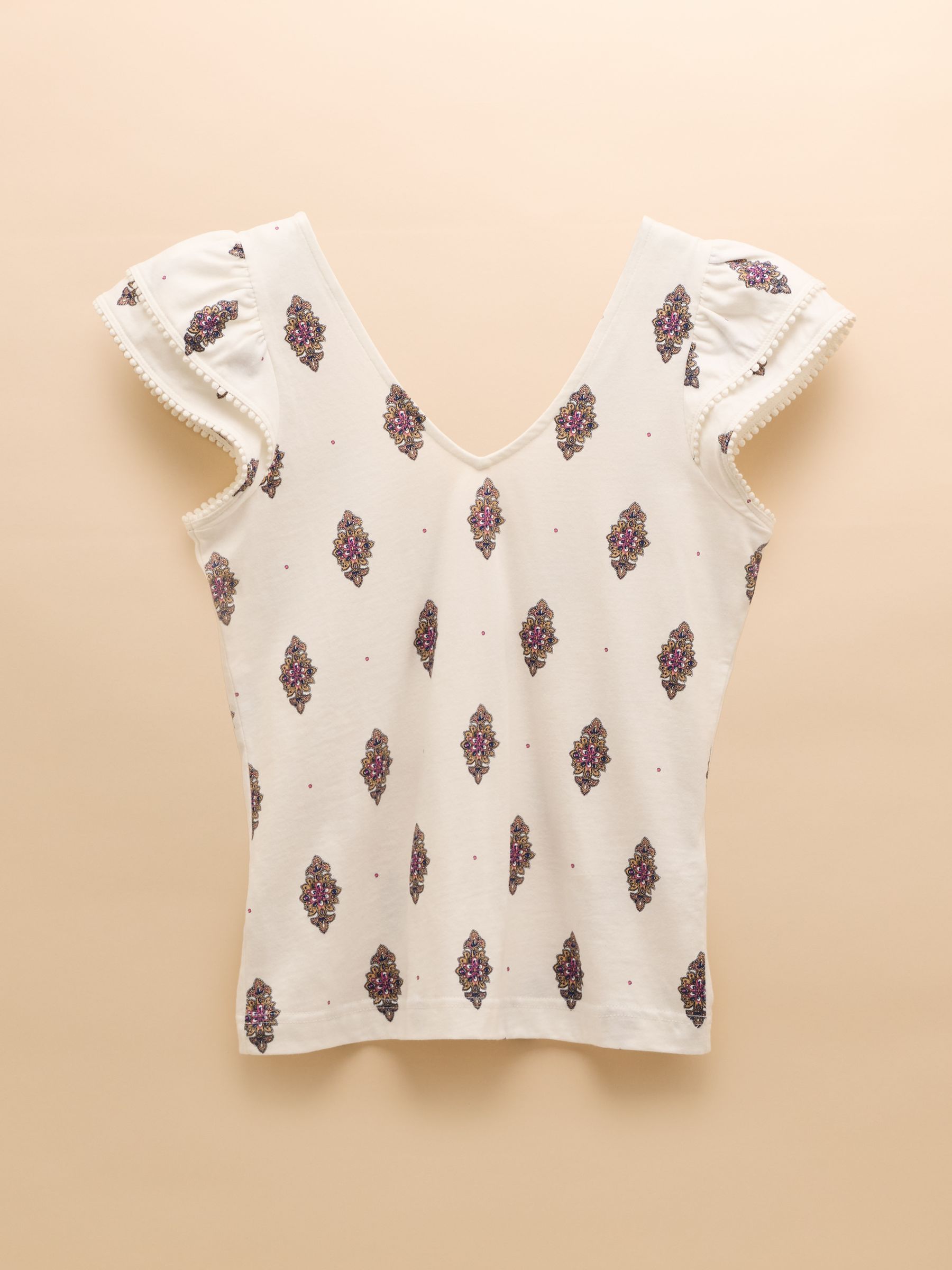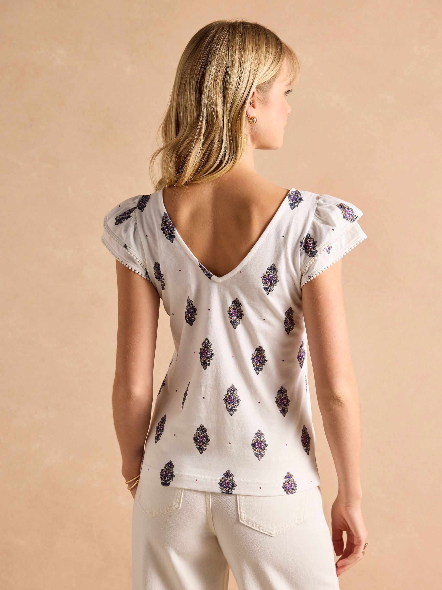 The Emma vest is a summer staple, elevated with feminine details. It's crafted from 100% cotton jersey, has a classic fit through the body and a flattering v-neck with a plunged v-shaped back neck. The double frill sleeves add both structure and interest and have been finished with a pom pom trim. Style with jeans or shorts for an effortless look that you'll wear over and over again. 100% cotton jersey Classic fit V-neck Double frilled sleeves with pom pom trim
