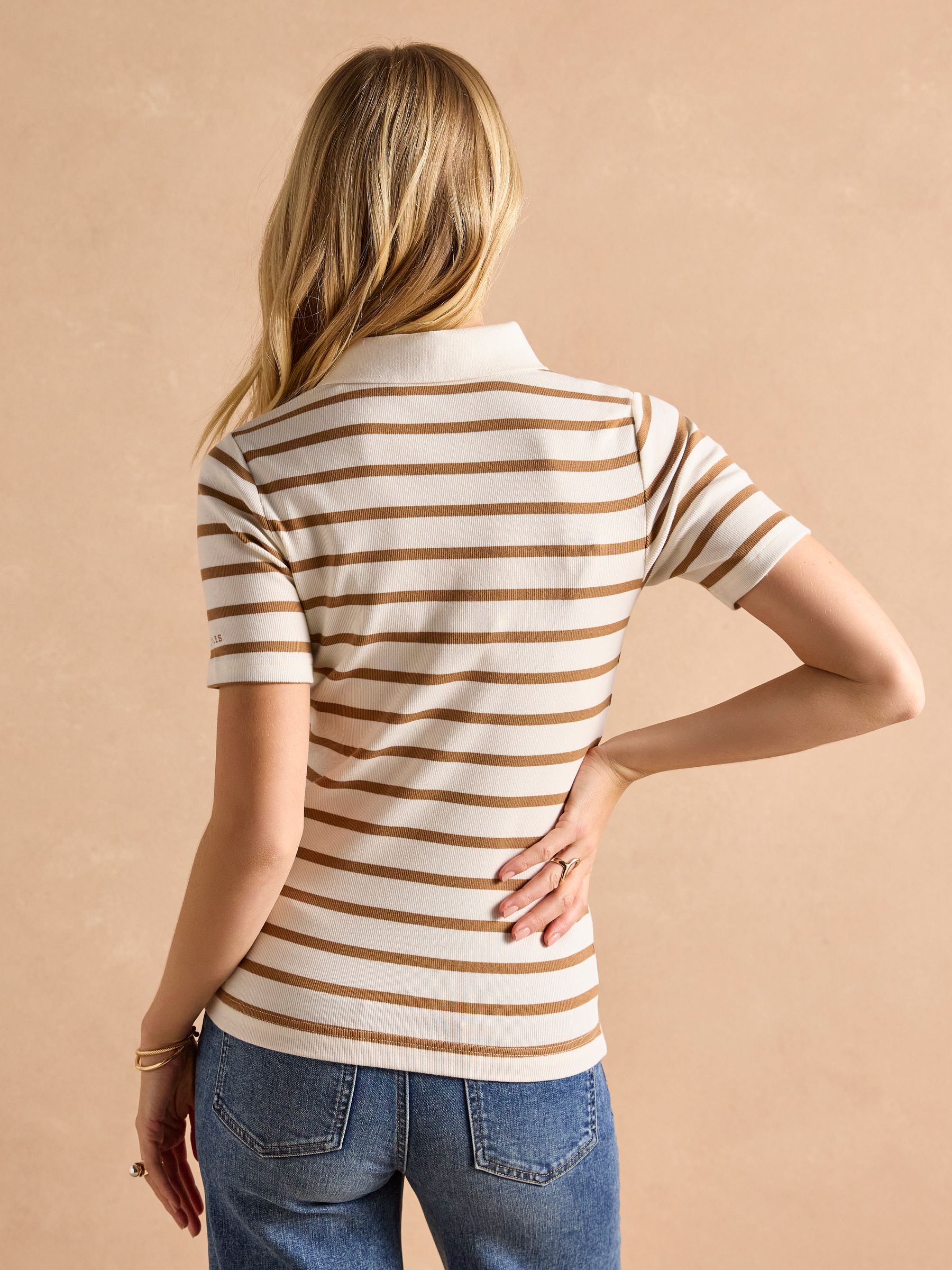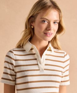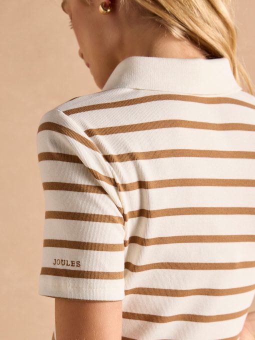 The Fairfield short-sleeved polo shirt is a versatile style that can be worn alone in the fairer months and used as a base for layering in colder ones. It's crafted from a soft cotton blend, has a stretchy ribbed fabric, and sits close to the body in a slim fit. Polo-inspired details can be seen through the button placket, collar, and twill collar stand. All over stripes and Joules embroidery to the cuff finish it off perfectly. Cotton blend Short sleeves Ribbed fabric Button placket Collar with striped trim Joules embroidery on the cuff Twill collar stand Striped
