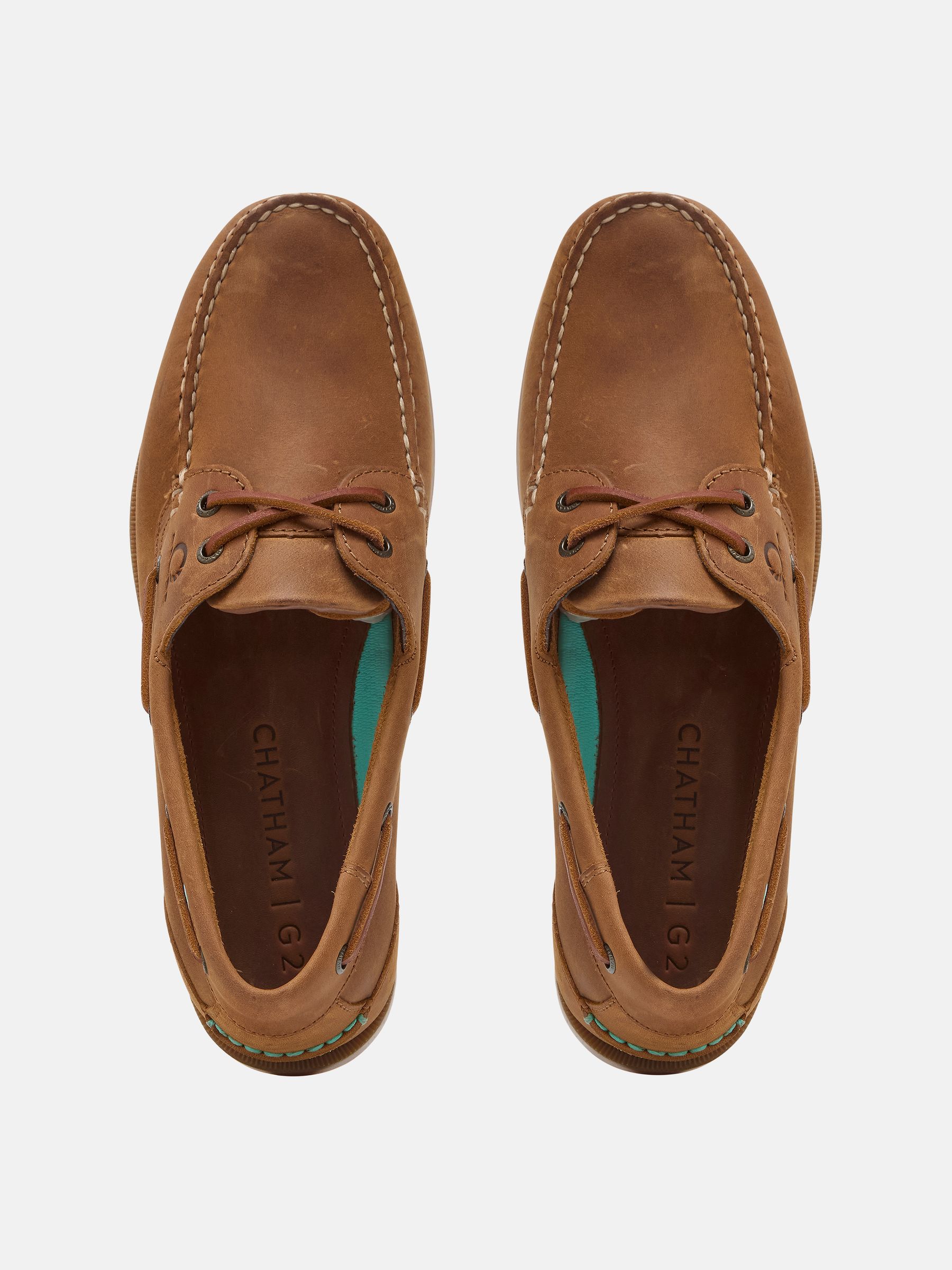 The unrivalled British-designed lace up boat shoe, Deck Lady II is a key style in Chatham's bestselling G2 collection, which is famed for its long-lasting, high quality shoes. Crafted from premium walnut leather with an enhanced grip sole, Deck Lady II is moccasin-constructed for an optimal fit and handstitched on the last. This leading boat shoe also features their new sole spring poron performance cushioning, which is anti-bacterial and offers maximum comfort and shock absorption, and as part of the durable G2 collection, benefits from their unique 2-year manufacturer's guarantee.