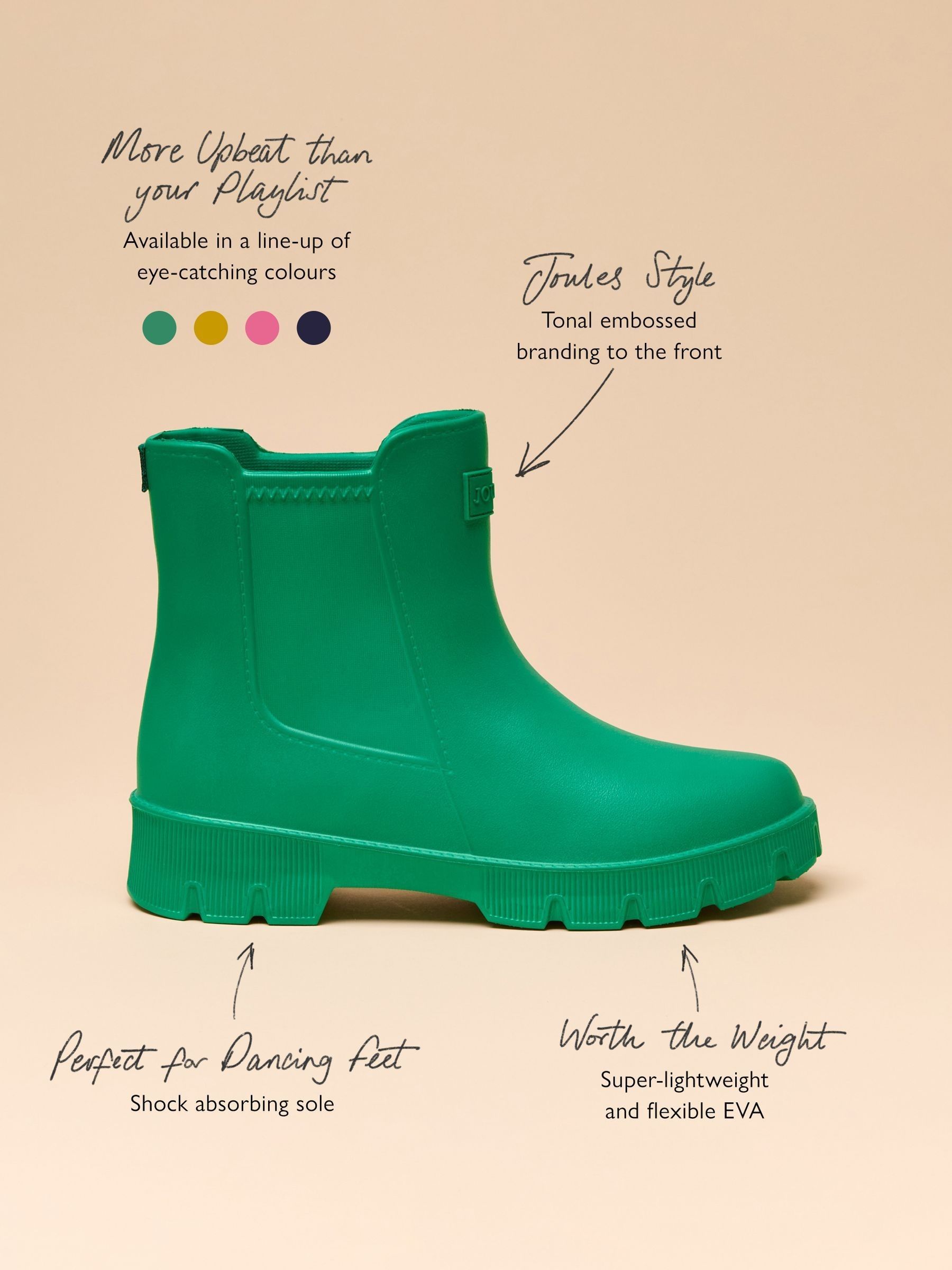 So featherlike, you'll never know that you're wearing them or carrying them along. Made from EVA for a rubber-like flexible finish, these are everyday wellies made for making memories. Available in an array of colours, they will never blend into the background. No matter whether it's kicking up a storm at a festival, strolling along the shore, walking the dog in the rain, or traipsing over dew-drenched grass at home, these wellies (rain)dance to a different beat. Made from lightweight and flexible EVA Shock-absorbing sole Joules logo embossed on a badge at the front
