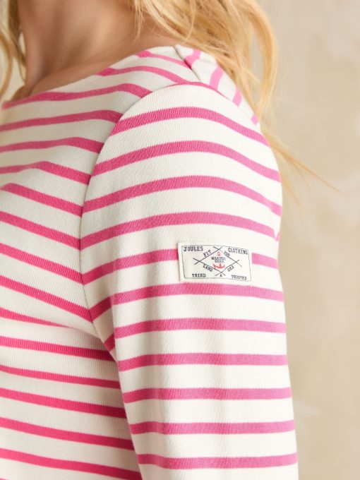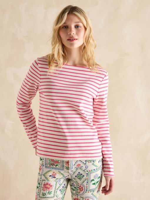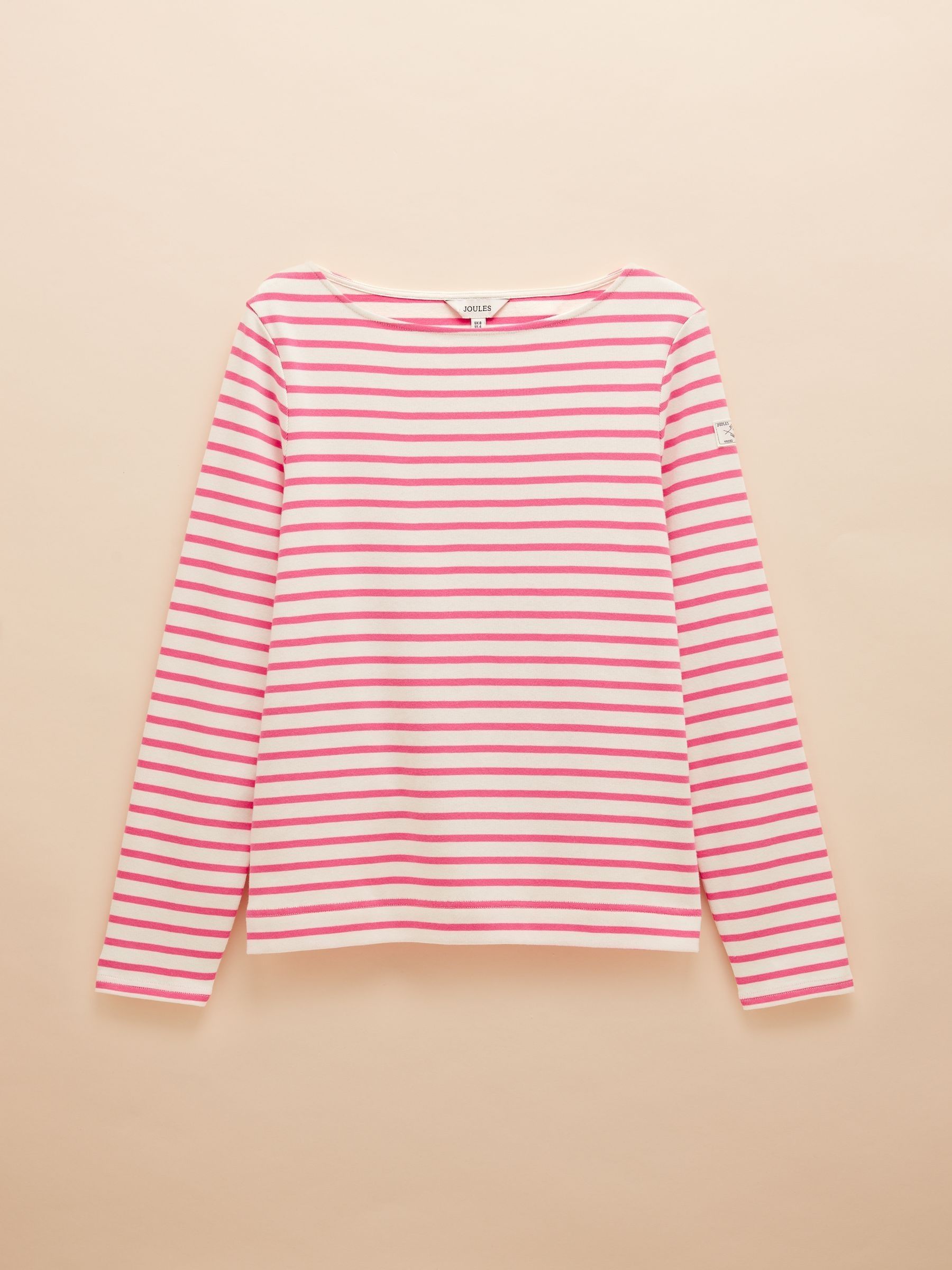 Our classic relaxed fit Harbour embodies a wealth of heritage. It’s a style we’ve been making and you’ve been loving for a long time. Always on a mission to enhance our pieces, we have updated the fabric and elevated the fit to create a better-than-ever Harbour you can truly depend on. The striped Breton shirt is a statement piece that’s evolved over time. Once worn by sailors in Brittany, favoured by creatives and loved by style icons. Today it continues to be a legendary style. So, what's new? The fabric is now a heavier-weight cotton jersey that feels supremely soft to the touch and it has a wider boat neck. It remains distinctive through the array of prints and stripes for you to choose from and is completed with a Joules Mariner's Grade badge on the sleeve that gives it a nautical nod and is another mark of its quality. Its versatility makes it perfect for building multiple looks around. Updated fit and fabric Heavyweight cotton jersey Relaxed fit Wider boat neck Side vents Striped or patterned Branded tab to the left sleeve (as worn) Mariner's Grade Length: 62cm (based on a UK size 12) Joules Womens 2 for £45 on Selected Stripe Tops.