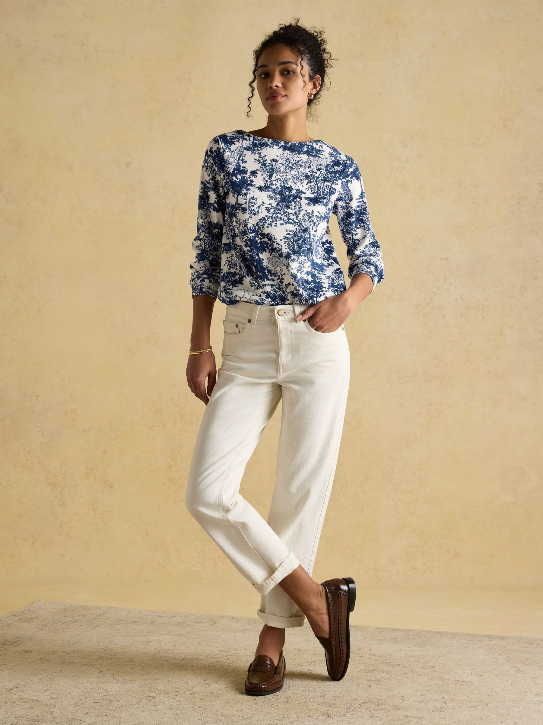 Our classic relaxed fit Harbour embodies a wealth of heritage. It’s a style we’ve been making and you’ve been loving for a long time. Always on a mission to enhance our pieces, we have updated the fabric and elevated the fit to create a better-than-ever Harbour you can truly depend on. The striped Breton shirt is a statement piece that’s evolved over time. Once worn by sailors in Brittany, favoured by creatives and loved by style icons. Today it continues to be a legendary style. So, what's new? The fabric is now a heavier-weight cotton jersey that feels supremely soft to the touch and it has a wider boat neck. It remains distinctive through the array of prints and stripes for you to choose from and is completed with a Joules Mariner's Grade badge on the sleeve that gives it a nautical nod and is another mark of its quality. Its versatility makes it perfect for building multiple looks around. Updated fit and fabric Heavyweight cotton jersey Relaxed fit Wider boat neck Side vents Striped or patterned Branded tab to the left sleeve (as worn) Mariner's Grade Length: 62cm (based on a UK size 12)