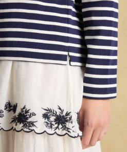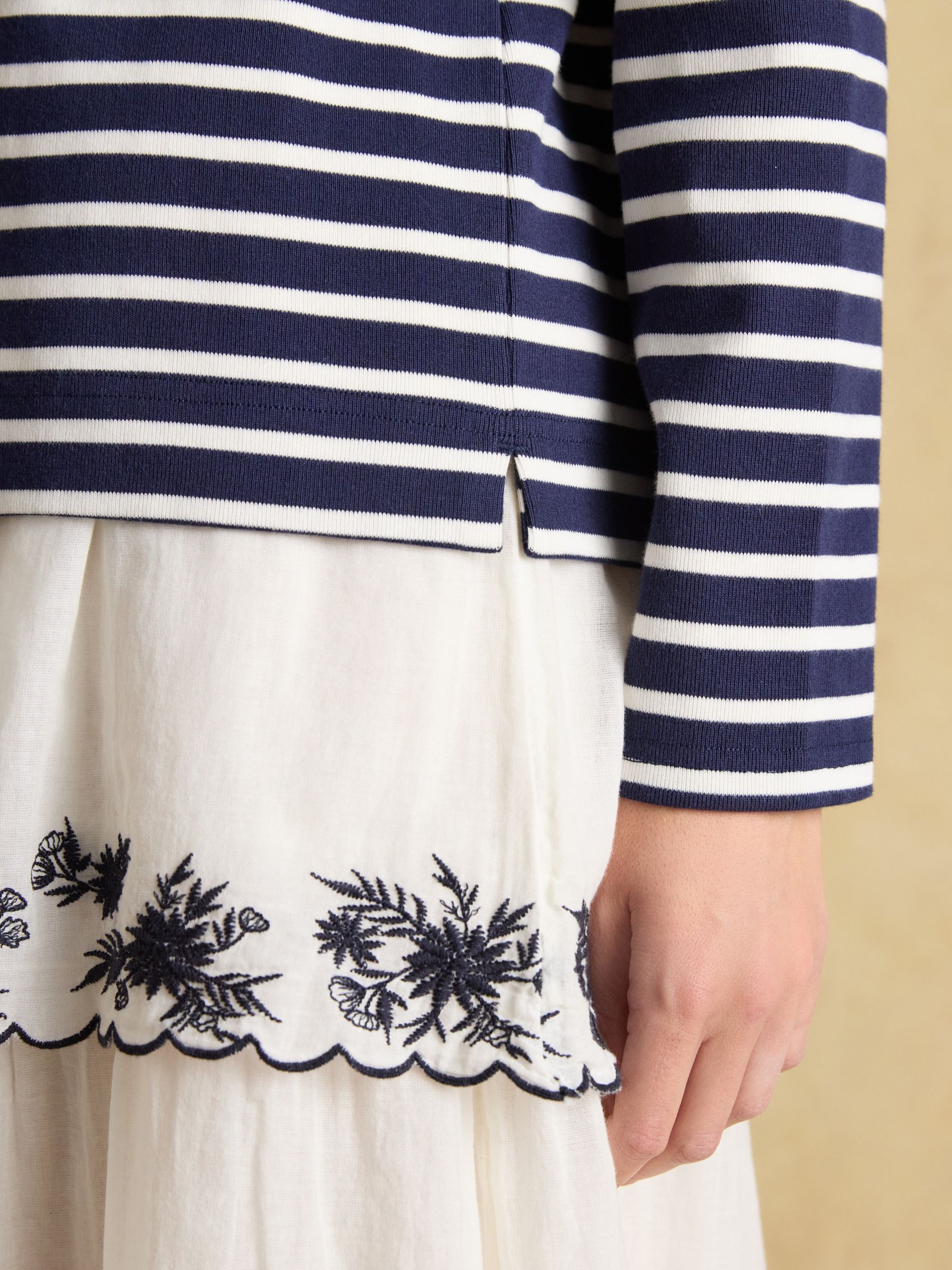 The Harbour top in Navy & White striped is a celebrated style that we have been making and you have been loving for a long time. Always on a mission to enhance our pieces, we have updated the fabric and elevated the fit to create a better-than-ever Harbour you can truly depend on. So, what's new? The fabric is now a heavier weight cotton jersey that feels supremely soft to the touch, it has a more relaxed overall fit, a wider boat neck and a shorter fit through the body. It remains distinctive through its horizontal stripes and is completed with a Joules tab to the left sleeve (as worn) as a nod to your favourite brand. Updated fit and fabric Heavyweight cotton jersey Relaxed fit Shorter length through the body Wider boat neck Side vents Striped Branded tab to the left sleeve (as worn) Length: 62cm (based on a UK size 12) Joules 2 for £45 Selected Stripe Tops. * * Saving applied will be apportioned across all qualifying items. To get the saving, you must order the qualifying items within the same order at the same time. If you later return one of the items, you will not be entitled to the discount. Offer applies to selected items at full price. Please refer to T&Cs for full details.