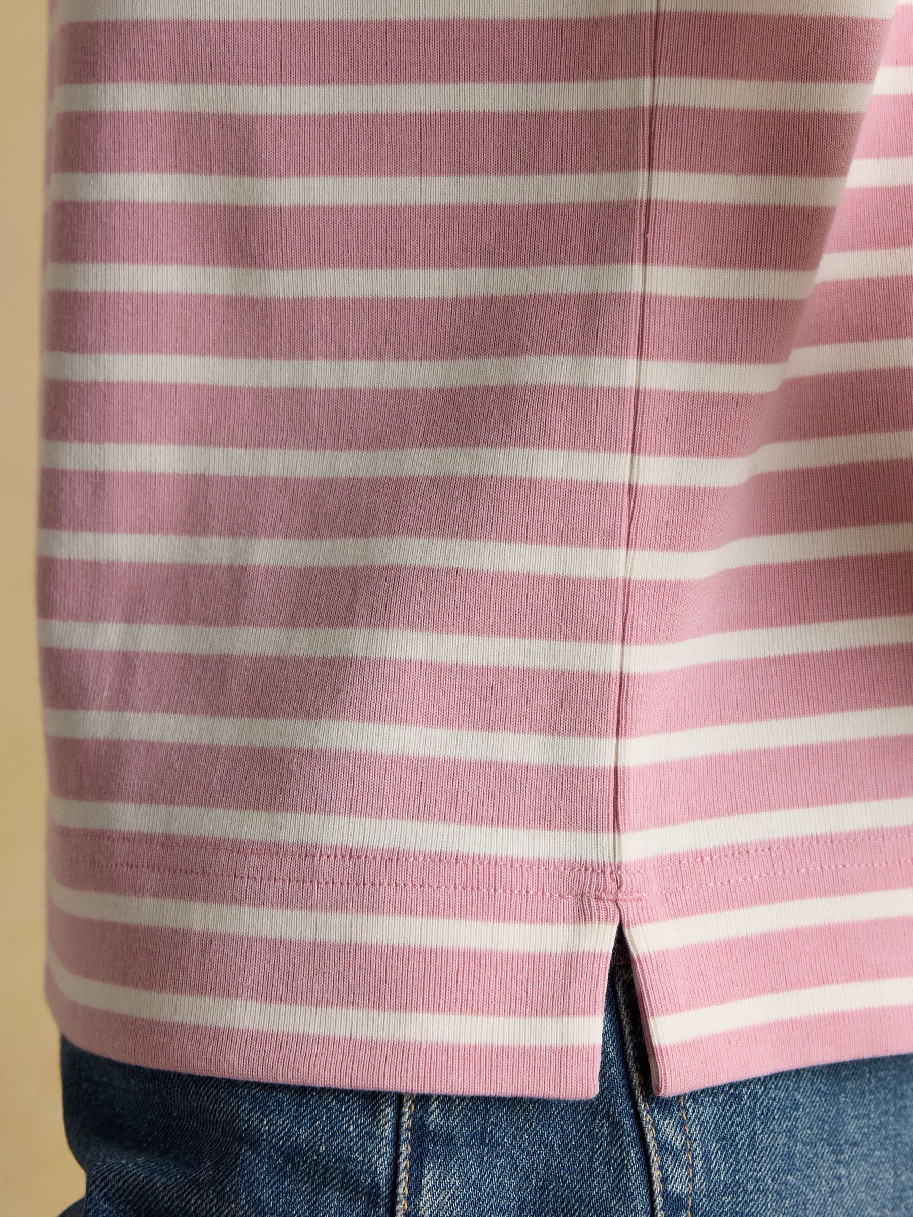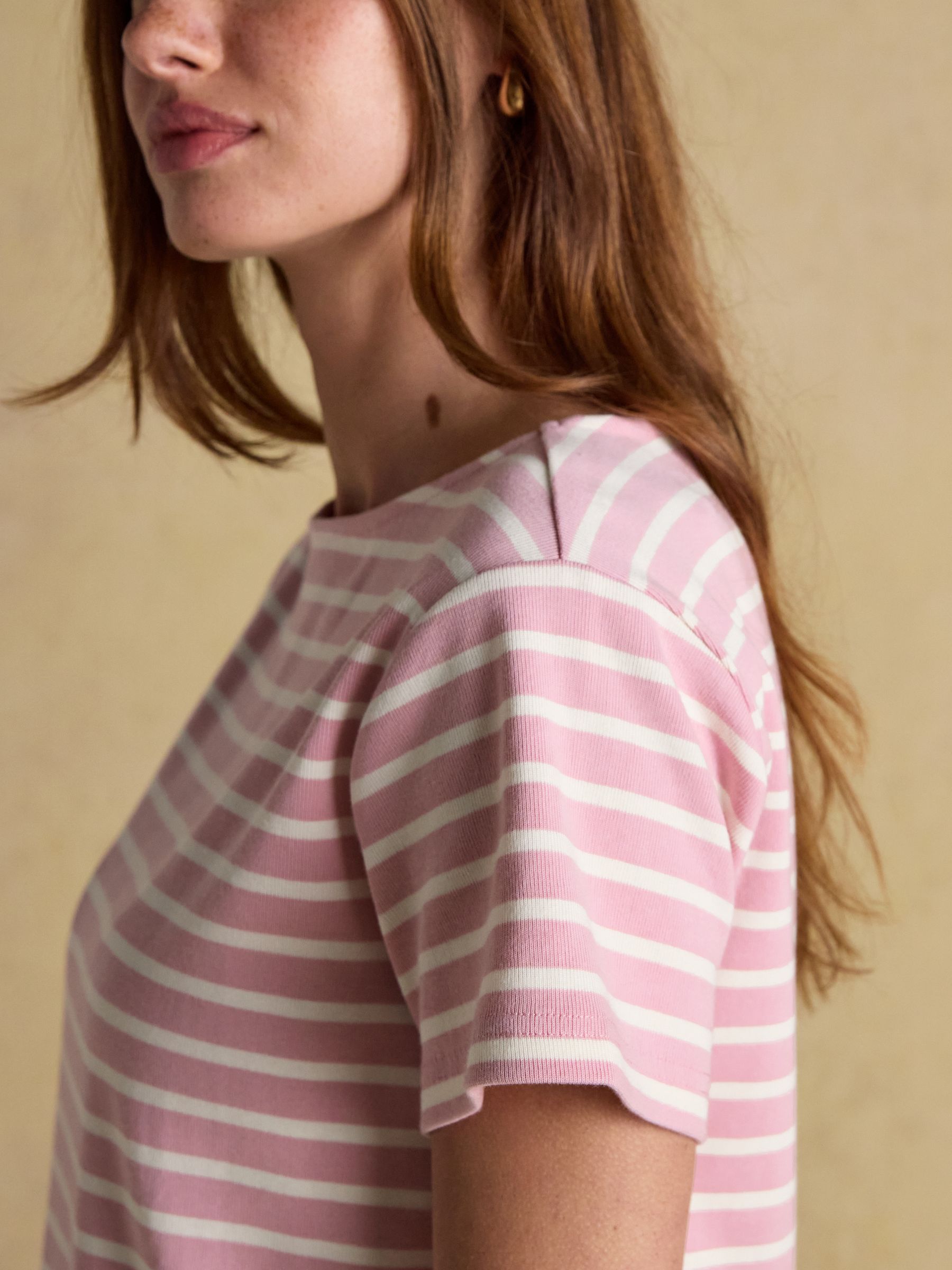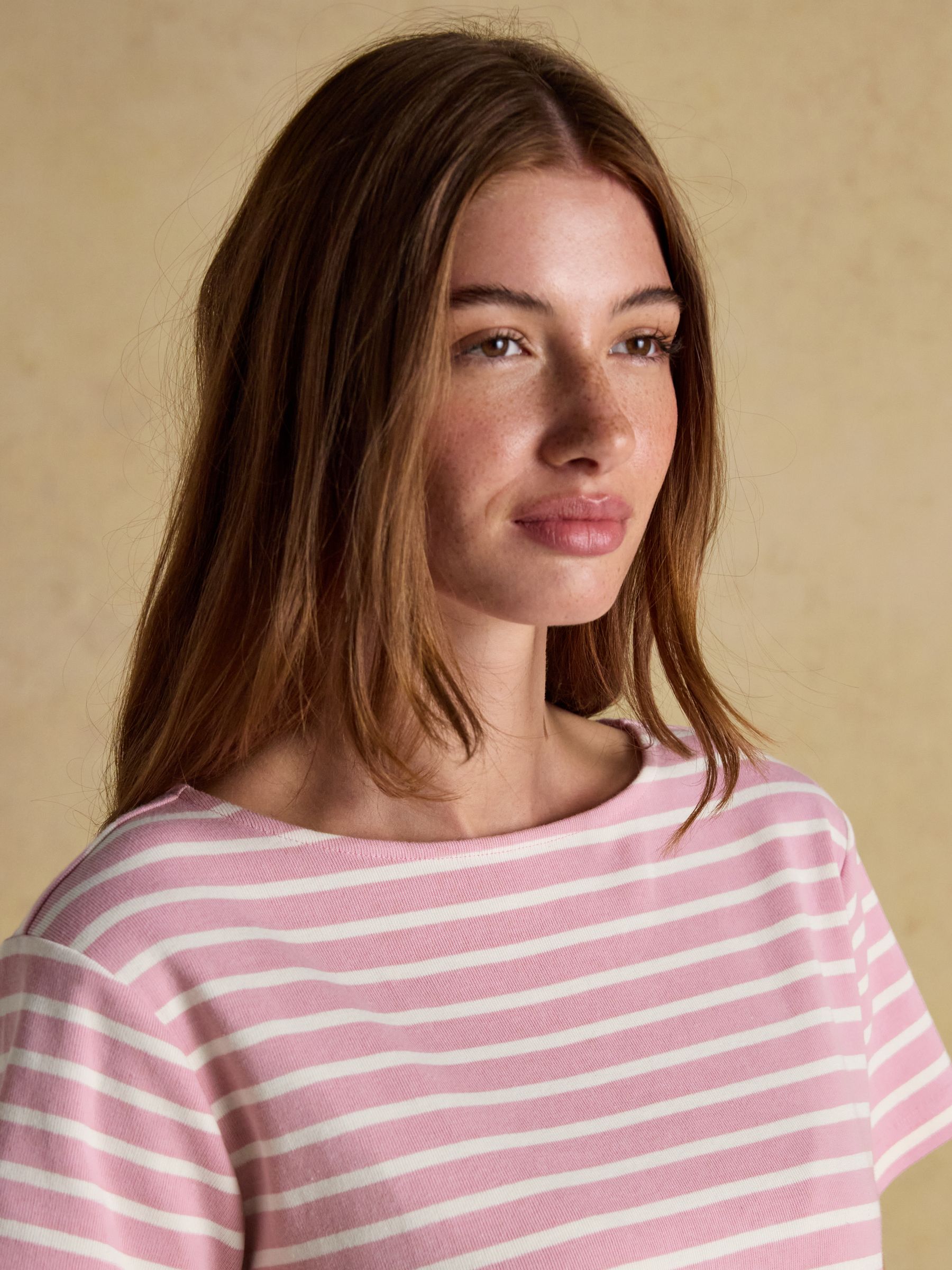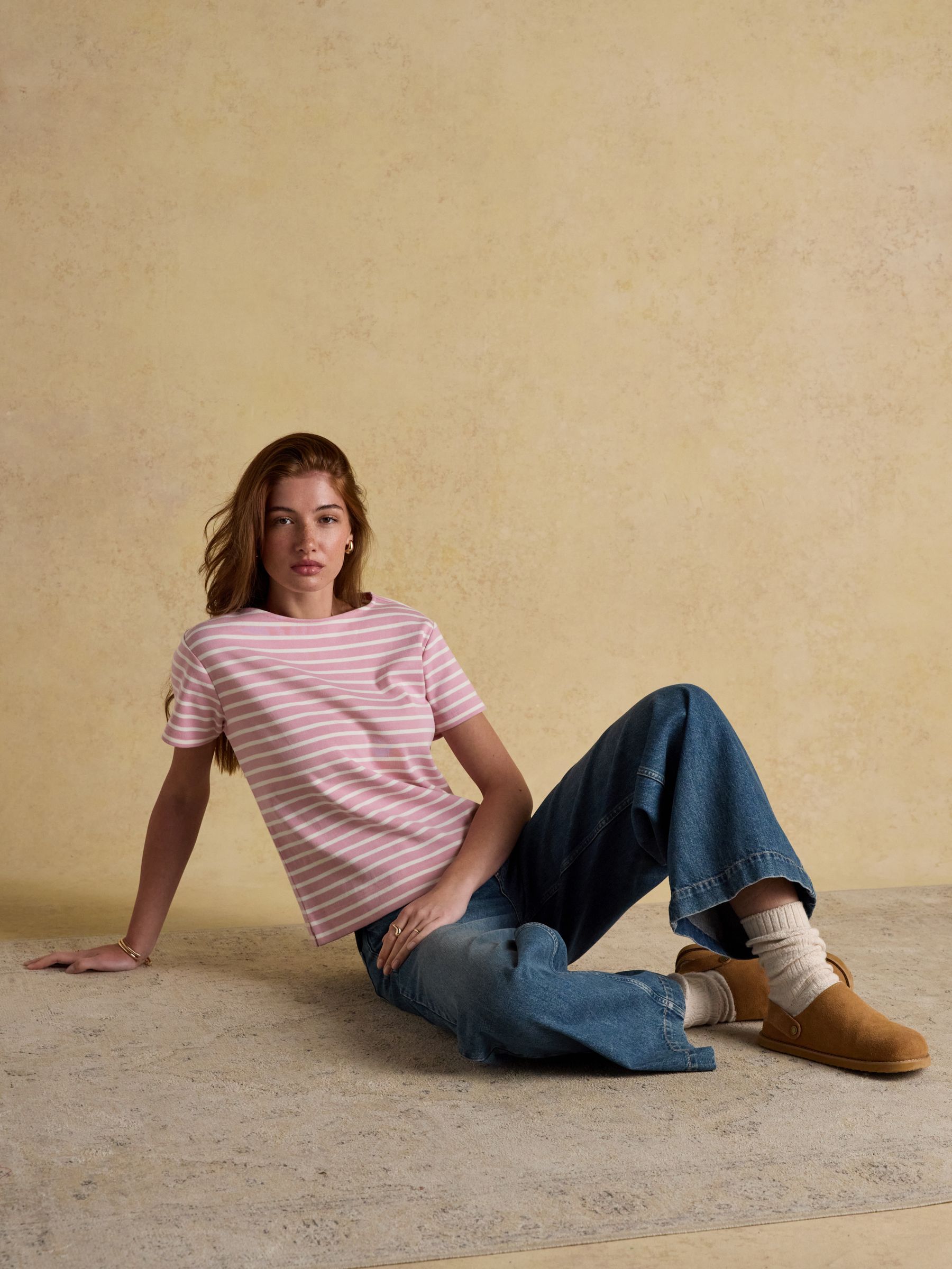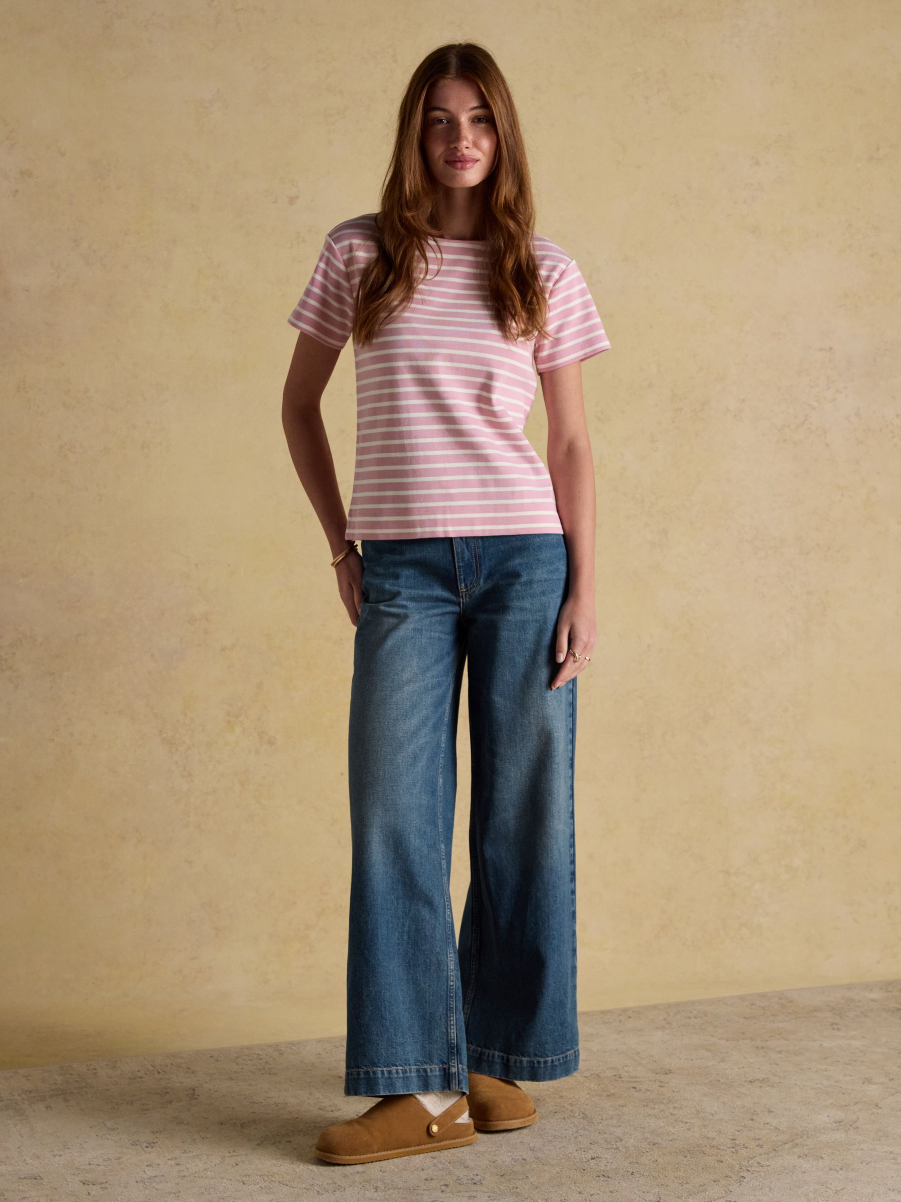 Our iconic Harbour top now comes in a short sleeve version for the spring and summer months. Crafted from the same Mariner's Grade 100% cotton jersey fabric that you know and love, it's sure to become your most-worn piece this season. It has a flattering boat neck, a ribbed fabric finish which adds stretch and has side splits. A relaxed fit through the body and dropped shoulders creates a laid-back feel that is exactly what the warm weather requires. -Mariner's Grade 100% cotton jersey -Relaxed fit -Short sleeves -Boat neck -Dropped shoulders -Side splits