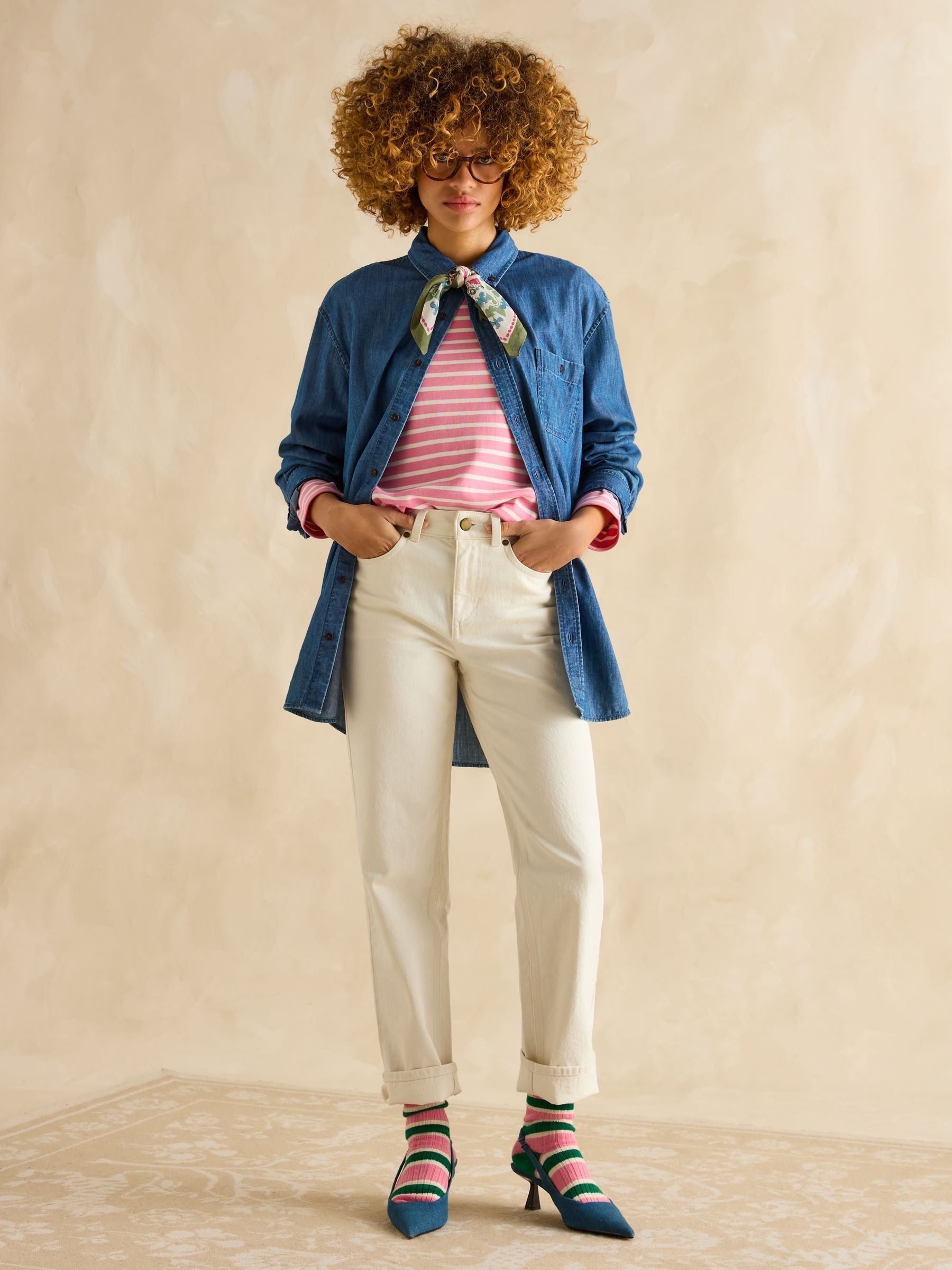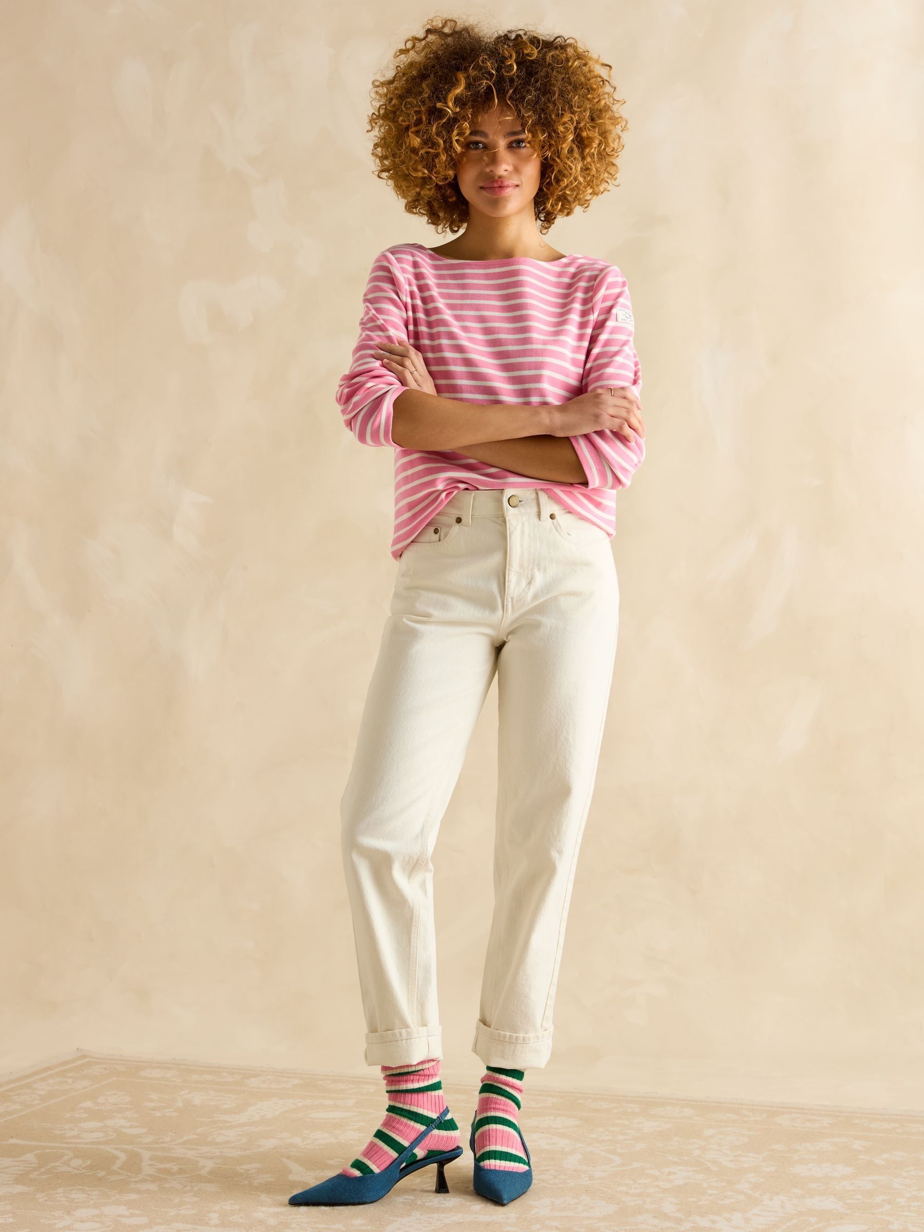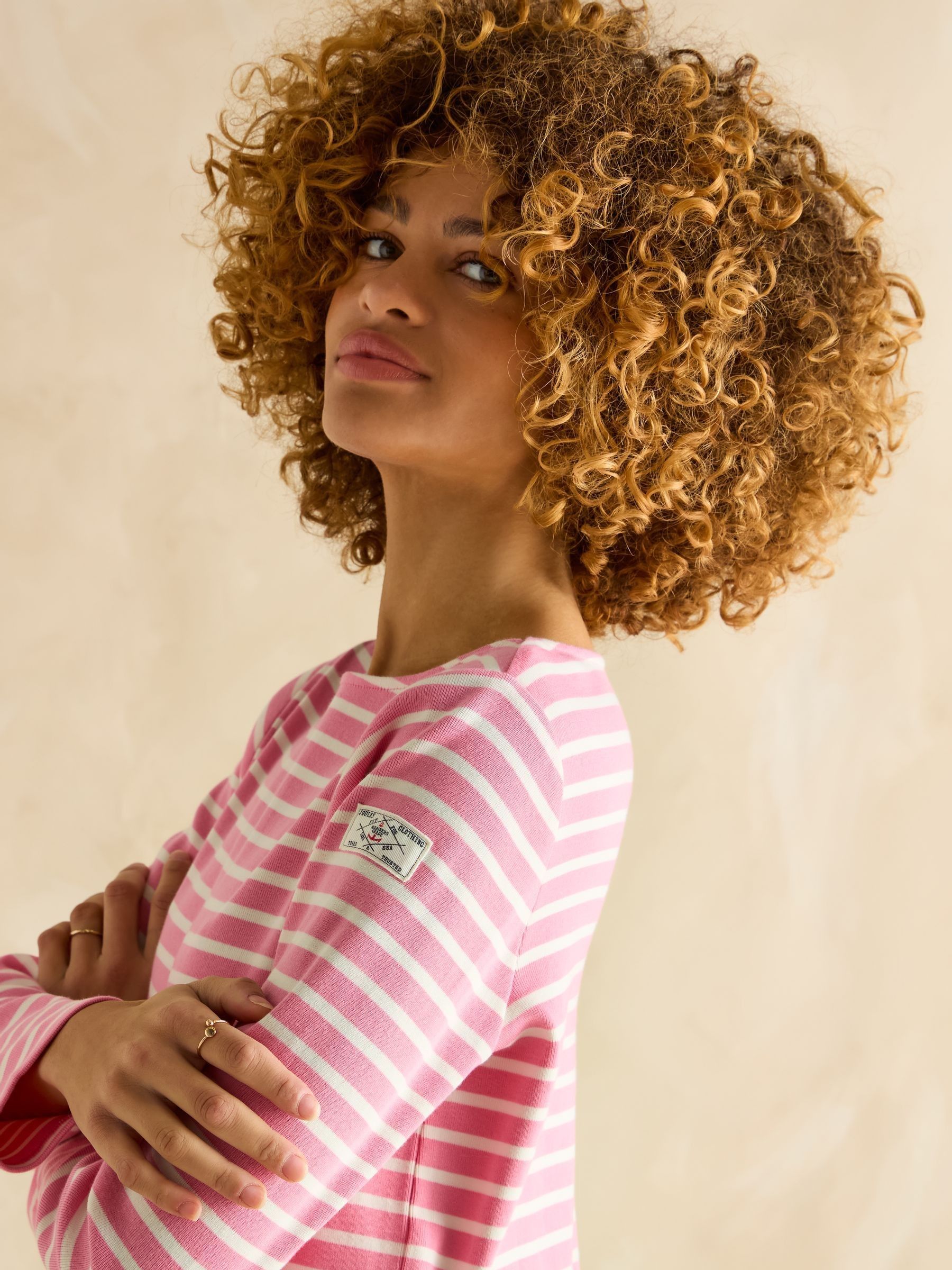 Our classic relaxed fit Harbour embodies a wealth of heritage. It’s a style we’ve been making and you’ve been loving for a long time. Always on a mission to enhance our pieces, we have updated the fabric and elevated the fit to create a better-than-ever Harbour you can truly depend on. The striped Breton shirt is a statement piece that’s evolved over time. Once worn by sailors in Brittany, favoured by creatives and loved by style icons. Today it continues to be a legendary style. So, what's new? The fabric is now a heavier-weight cotton jersey that feels supremely soft to the touch and it has a wider boat neck. It remains distinctive through the array of prints and stripes for you to choose from and is completed with a Joules Mariner's Grade badge on the sleeve that gives it a nautical nod and is another mark of its quality. Its versatility makes it perfect for building multiple looks around. Updated fit and fabric Heavyweight cotton jersey Relaxed fit Wider boat neck Side vents Striped or patterned Branded tab to the left sleeve (as worn) Mariner's Grade Length: 62cm (based on a UK size 12) Joules Womens 2 for £45 on Selected Stripe Tops.