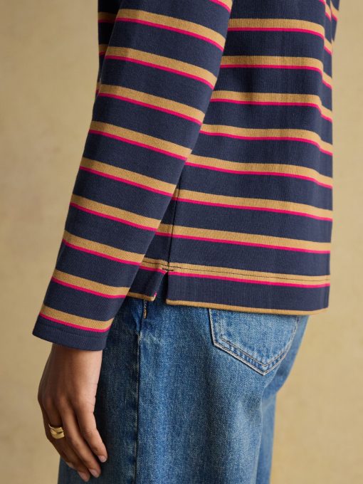Our classic relaxed fit Harbour embodies a wealth of heritage. It’s a style we’ve been making and you’ve been loving for a long time. Always on a mission to enhance our pieces, we have updated the fabric and elevated the fit to create a better-than-ever Harbour you can truly depend on. The striped Breton shirt is a statement piece that’s evolved over time. Once worn by sailors in Brittany, favoured by creatives and loved by style icons. Today it continues to be a legendary style. So, what's new? The fabric is now a heavier-weight cotton jersey that feels supremely soft to the touch and it has a wider boat neck. It remains distinctive through the array of prints and stripes for you to choose from and is completed with a Joules Mariner's Grade badge on the sleeve that gives it a nautical nod and is another mark of its quality. Its versatility makes it perfect for building multiple looks around. Updated fit and fabric Heavyweight cotton jersey Relaxed fit Wider boat neck Side vents Striped or patterned Branded tab to the left sleeve (as worn) Mariner's Grade Length: 62cm (based on a UK size 12) Joules Womens 2 for £45 on Selected Stripe Tops. Joules 2 for £45 Selected Stripe Tops. * * Saving applied will be apportioned across all qualifying items. To get the saving, you must order the qualifying items within the same order at the same time. If you later return one of the items, you will not be entitled to the discount. Offer applies to selected items at full price. Please refer to T&Cs for full details.