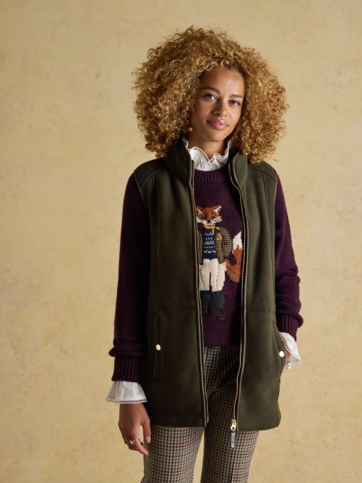 Joules Women’s Heritage Green Longline Fleece Gilet | Green