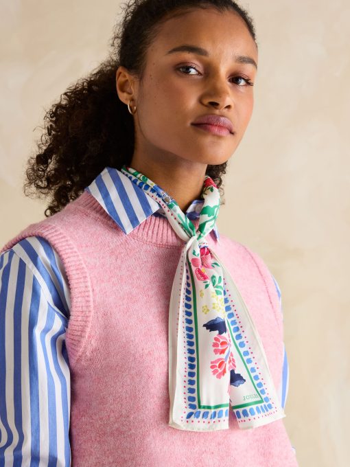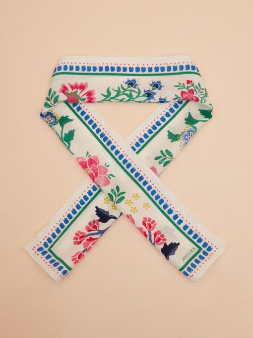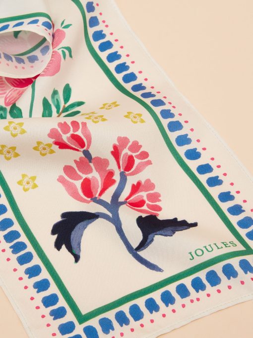 Joules Women’s Highgrove Cream Tile Print Skinny Printed 100% Silk Scarf | Cream Tile Print