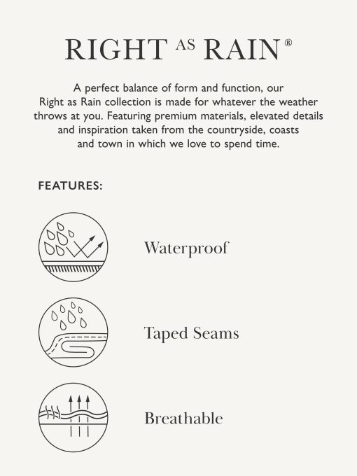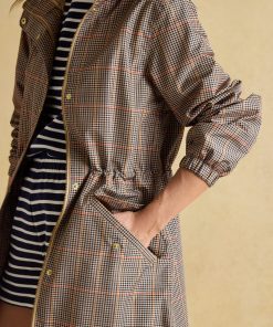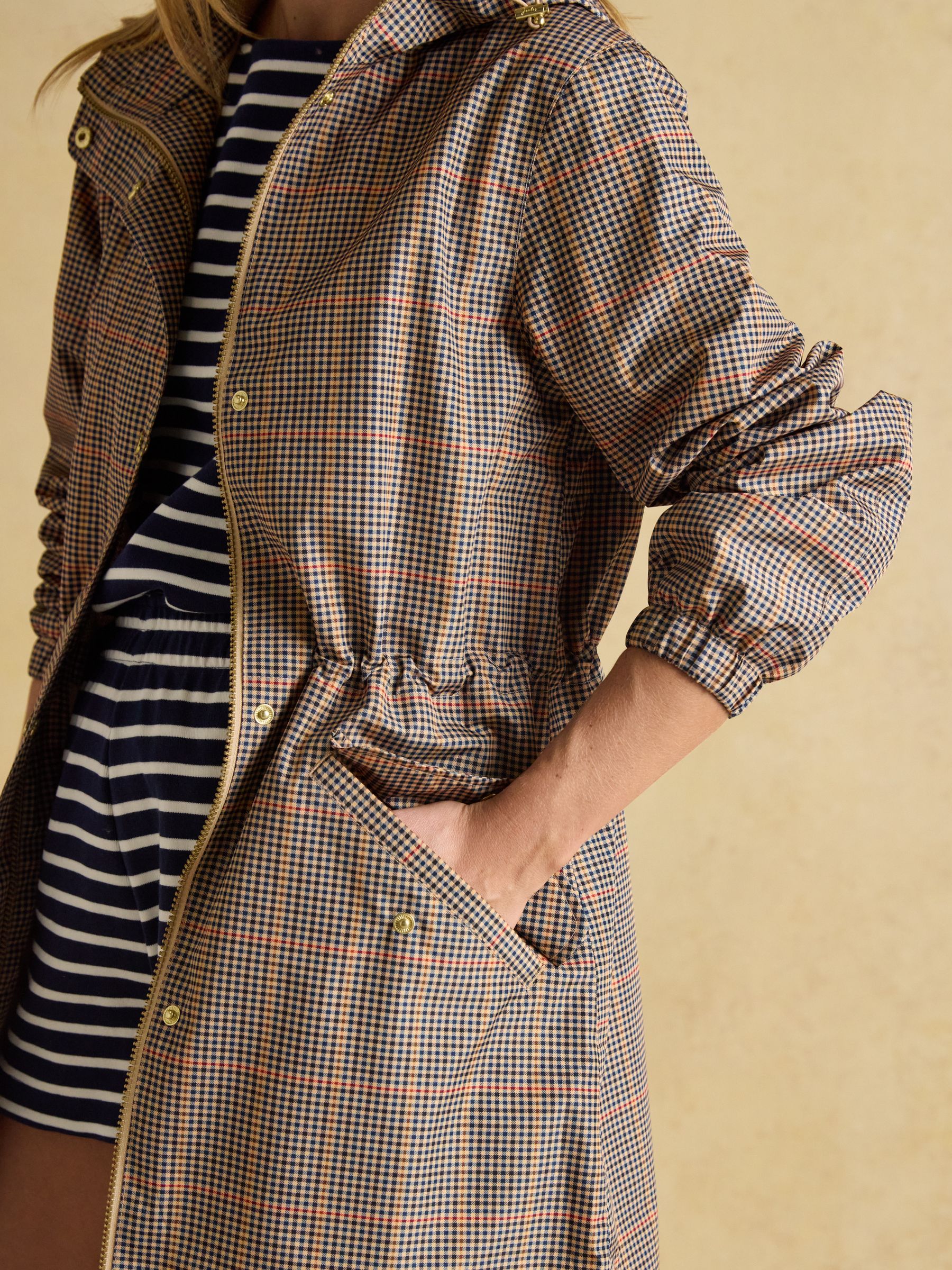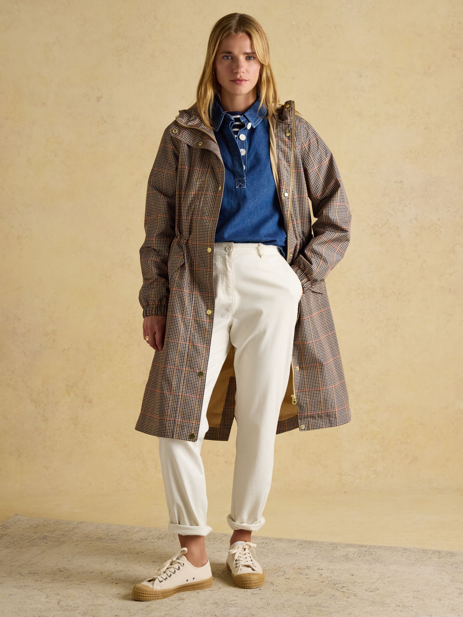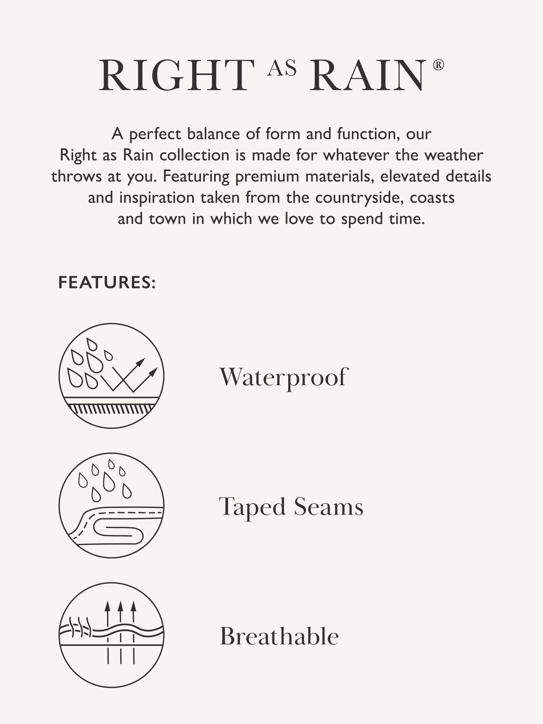 We've perfected the pack away by combining practicality and style. The Holkham packs away into its own pocket (hidden at the back) that can easily be stashed away until you need it. Crafted from a lightweight yet substantial fabric in brown and complete with taped seams, it's a real waterproof wonder. To keep you cool and comfy on those wet walks, we've added a mesh lining to the upper half of the jacket for breathability. Durable, high-shine poppers, toggles and zip are a nod to its quality, whilst an internal adjustable waist is a flattering feature. The perfect companion for any trip, whether that be a blustery coastal ramble, a countryside stroll or a dash around the local farmer's market. Relaxed fit Zip and popper fastenings Waterproof with taped seams Half mesh lining Packs into the storm flap pocket (hidden at the back) High-shine trims Hood with adjustable bungee toggles and mesh lining Adjustable waist with internal toggles Flap pockets with popper fastening Length: 103cm (based on UK size 12)