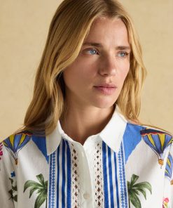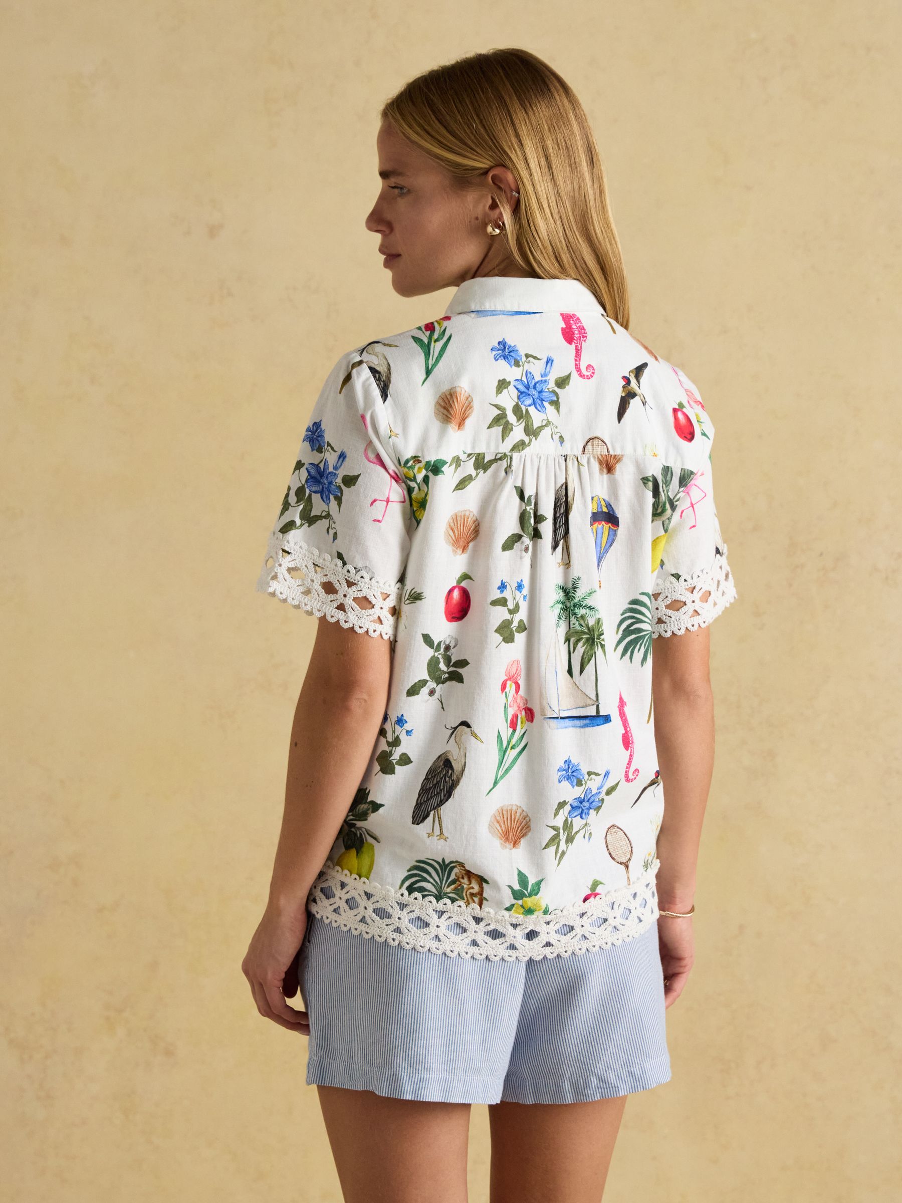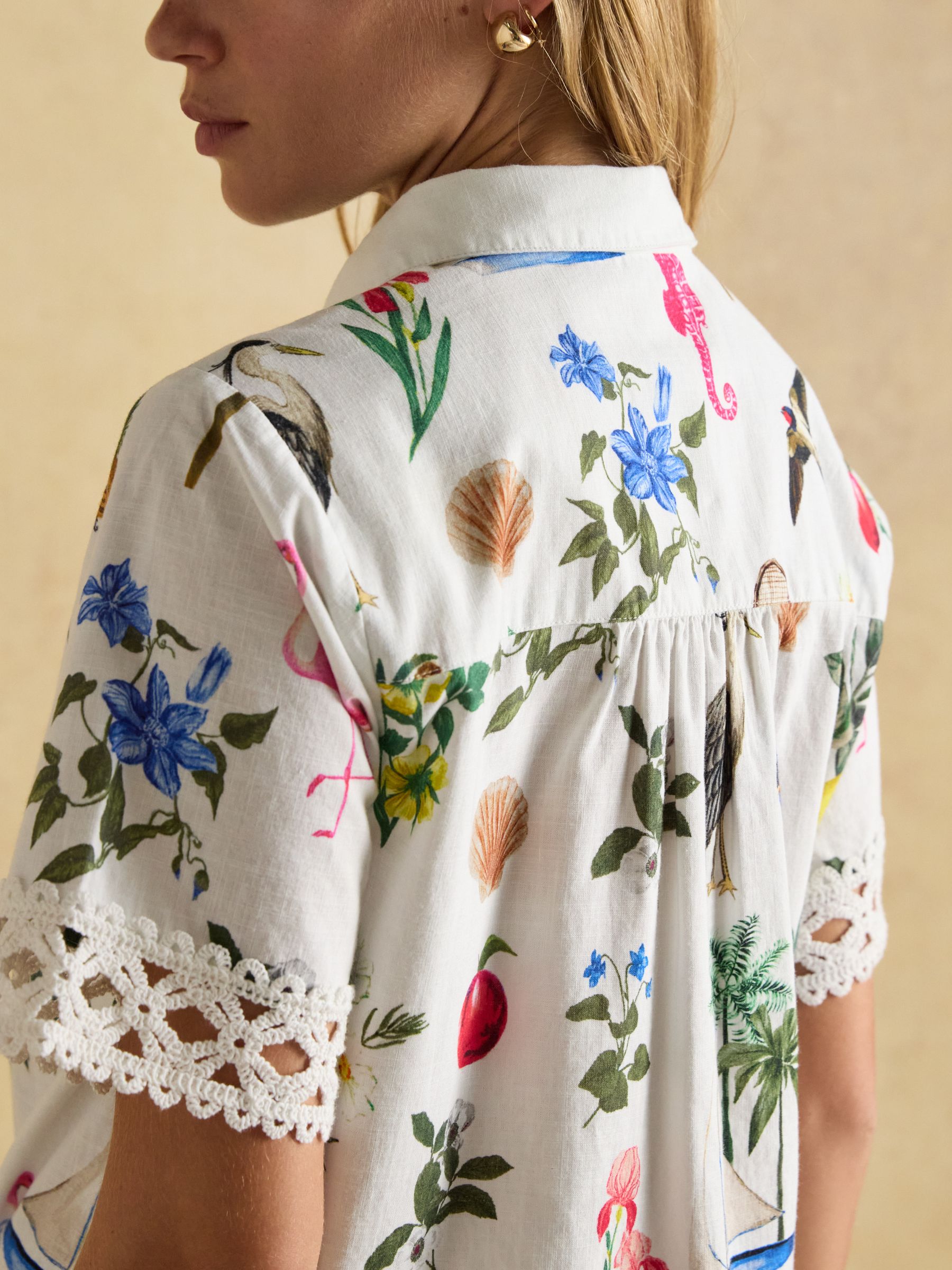Looking to jazz up your summer fits? Look no further. We introduce our Isobel shirt. Intricately crafted with contemporary crochet detailing, this piece offers so much. It's made from cotton and features short sleeves, a collar and it's adorned with vibrant embroidery that's sure to brighten up any outfit. Whether you pair this with jeans, shorts, a skirt or even swimwear it will most definitely lift your style game. Cotton Regular fit Short Sleeves Crochet detailing Embroidery Button fastenings
