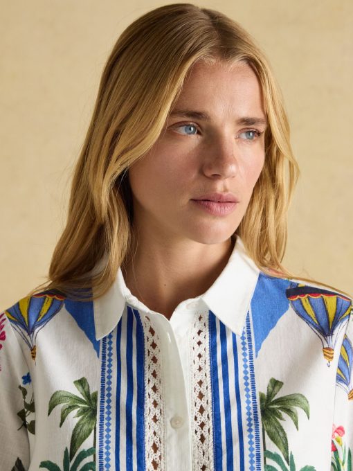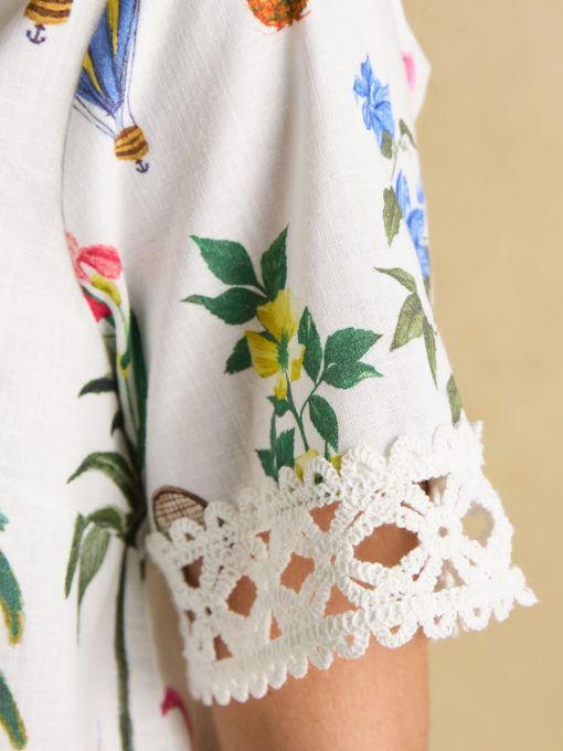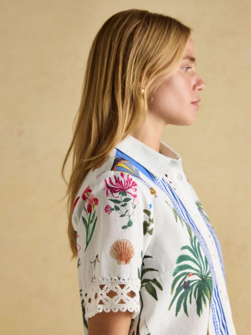Looking to jazz up your summer fits? Look no further. We introduce our Isobel shirt. Intricately crafted with contemporary crochet detailing, this piece offers so much. It's made from cotton and features short sleeves, a collar and it's adorned with vibrant embroidery that's sure to brighten up any outfit. Whether you pair this with jeans, shorts, a skirt or even swimwear it will most definitely lift your style game. Cotton Regular fit Short Sleeves Crochet detailing Embroidery Button fastenings