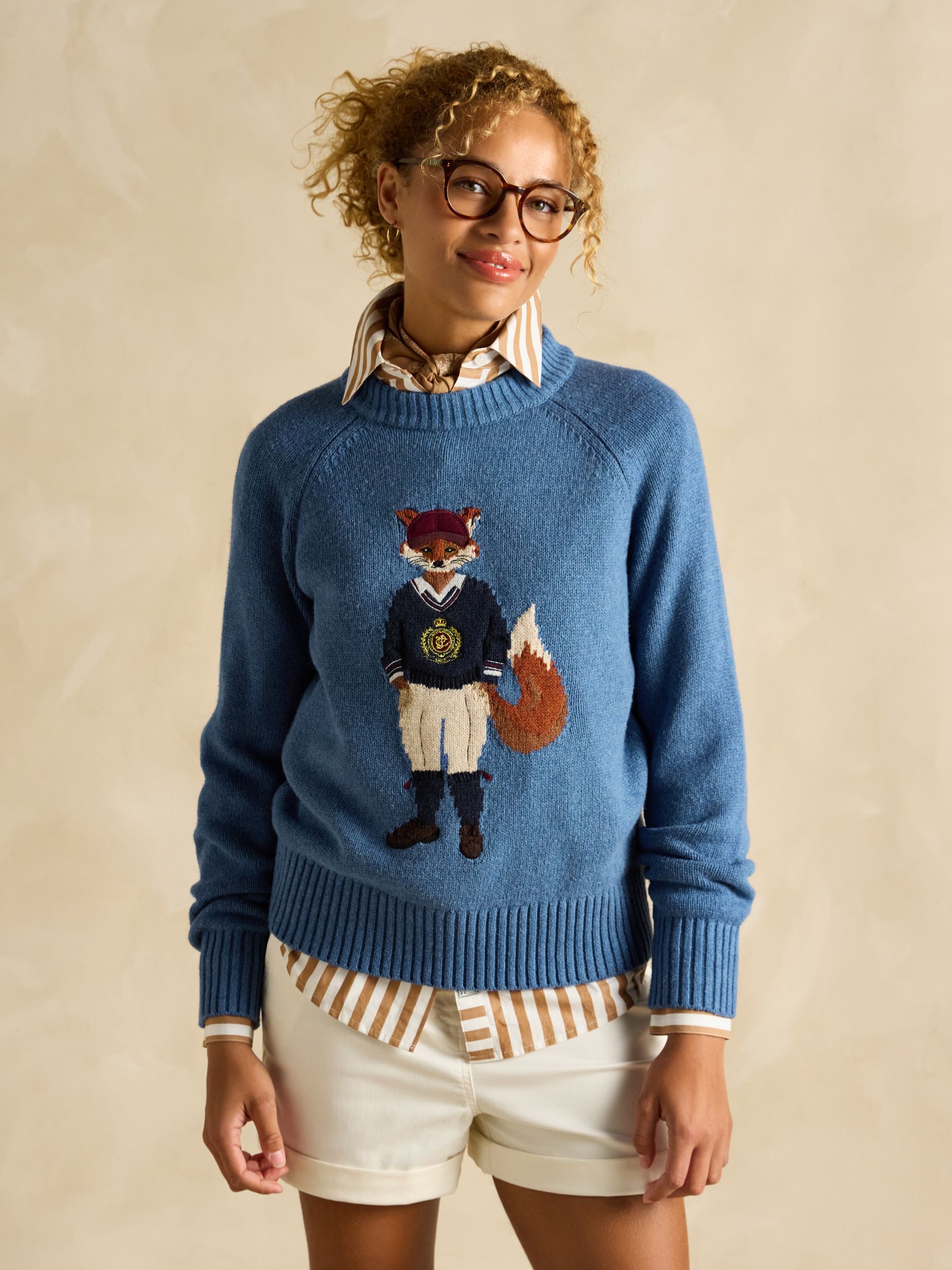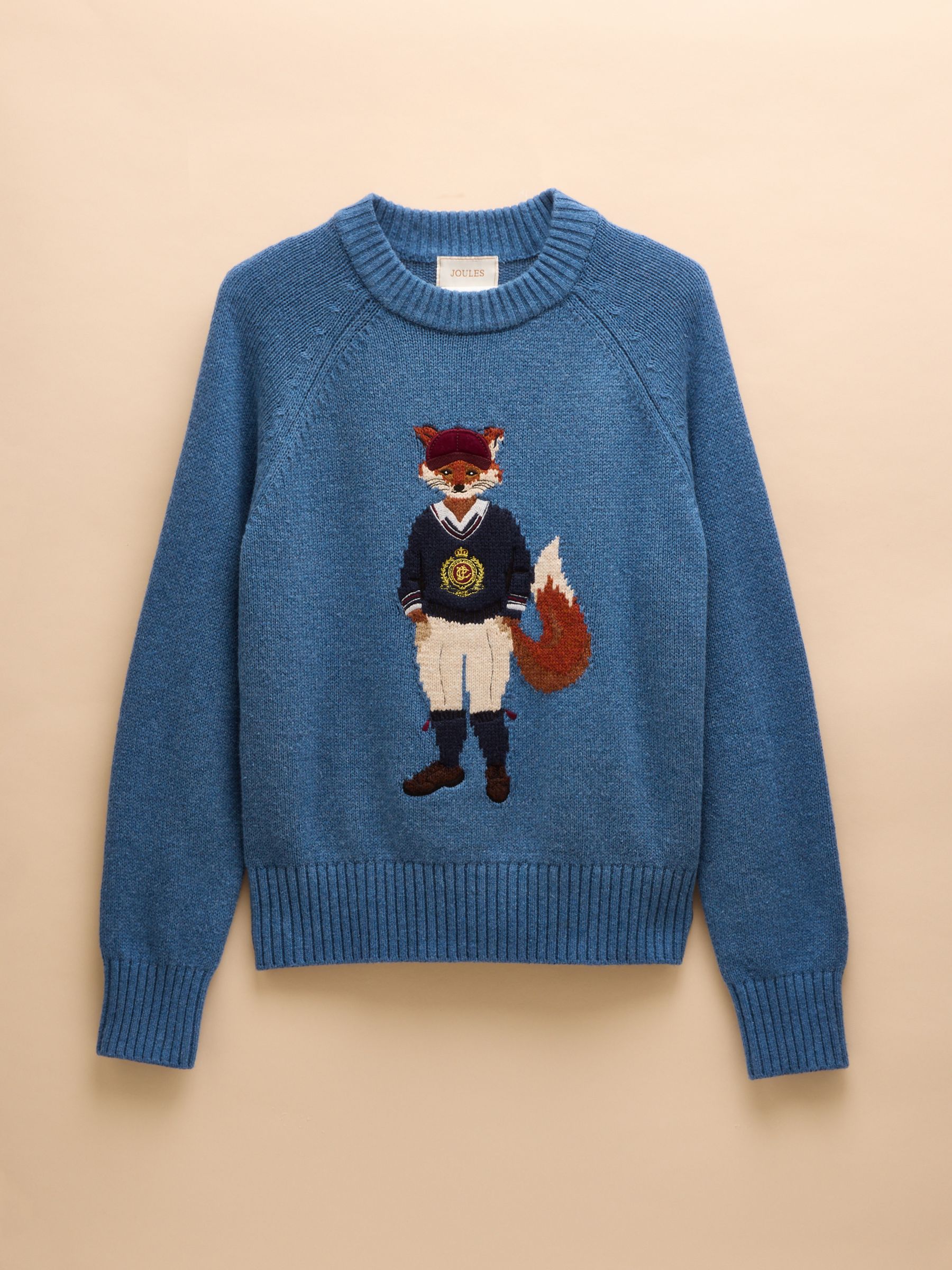 Look who's back? It's Jonty. If you didn't have chance to snap him up last season, now's your chance. This rather distinguished character is the focal point of the piece and represents the eccentricity of British style. The fox is knitted into the jumper and ever a fan of being well-dressed, can be seen sporting a very fetching outfit of his own. The jumper itself has been crafted with care from a quality cotton blend, it has a classic fit through the body and raglan sleeves for supreme comfort. The round neck and ribbed hem and cuffs offers the opportunity to layer almost anything underneath while its heritage colour palette is perfect for the season. Quirky and loveable, this is a style that will raise many a smile. Cotton blend Classic fit Intarsia Jonty the fox design Long raglan sleeves Round neck Ribbed hem, neck and cuffs