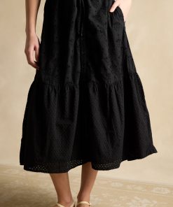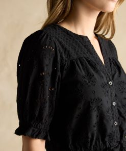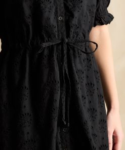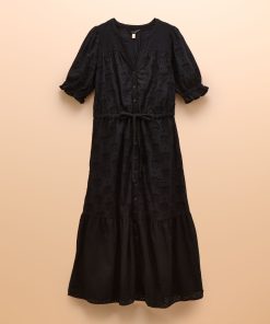Bedecked with broderie anglaise cutwork, this is a dress destined for your summer wardrobe. And if it looks familiar, that's because it's a returning favourite, updated for the new season. It sits at a midi length, has an elasticated waist with drawstring ties and a full button-down fastening. The notch neck adds another flattering touch, while the short blouson sleeves with frilled elasticated cuffs further enhance the piece. The body has a light lining for peace of mind, while the sleeves remain unlined to better showcase the broderie detailing. Style with sunshine and good times. 100% cotton Broderie anglaise cutwork Midi length Button down fastening Notch neck Short blouson sleeves with frilled elasticated cuffs Elasticated waist with drawstring ties Lined body