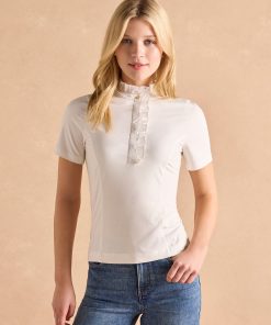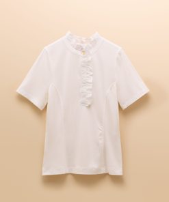 Joules Women’s Kate White Short Sleeve Frilled Neck Top | White