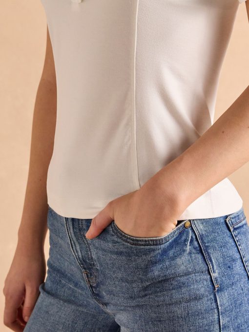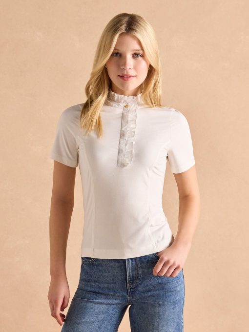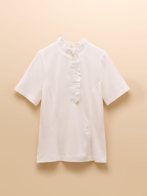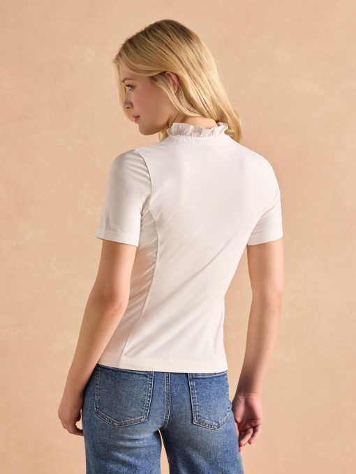 Joules Women’s Kate White Short Sleeve Frilled Neck Top | White