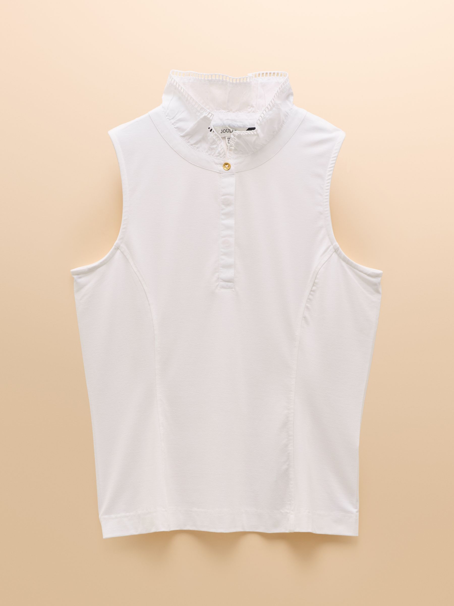 Step out in style with our chic Kate top. Crafted to a sleeveless design with a ruffled high neck, it makes for the perfect piece that's certain to add a fashion forward flare to your look. It’s finished with an artful trim at the neck and is fastened with a handy button. Viscose blend Classic fit Sleeveless Ruffled high neck Laddered trims at ruffled high neck Button fastening and neck