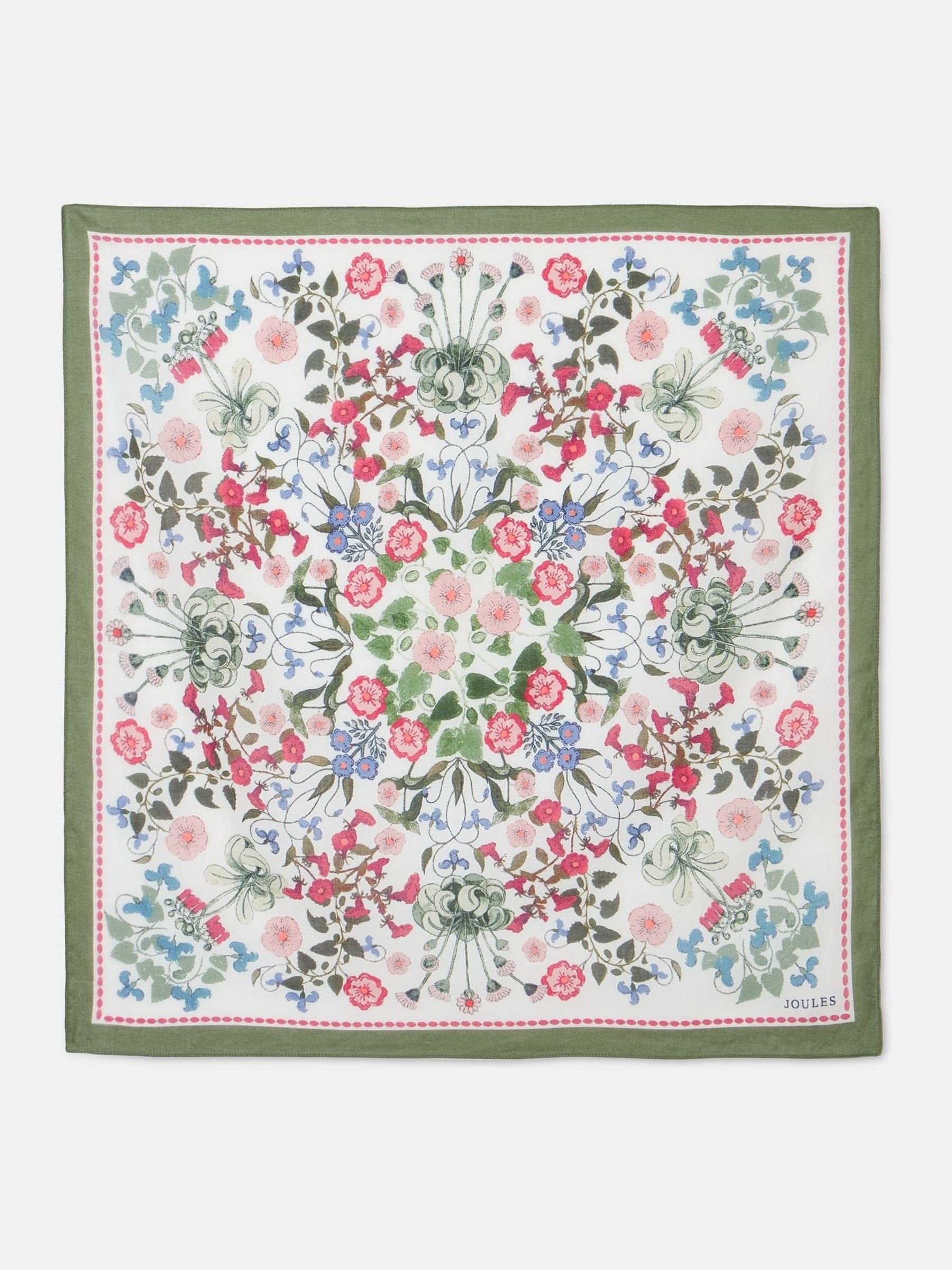 Joules Women’s Highgrove Cream Tile Print Skinny Printed 100% Silk Scarf | Cream Tile Print
