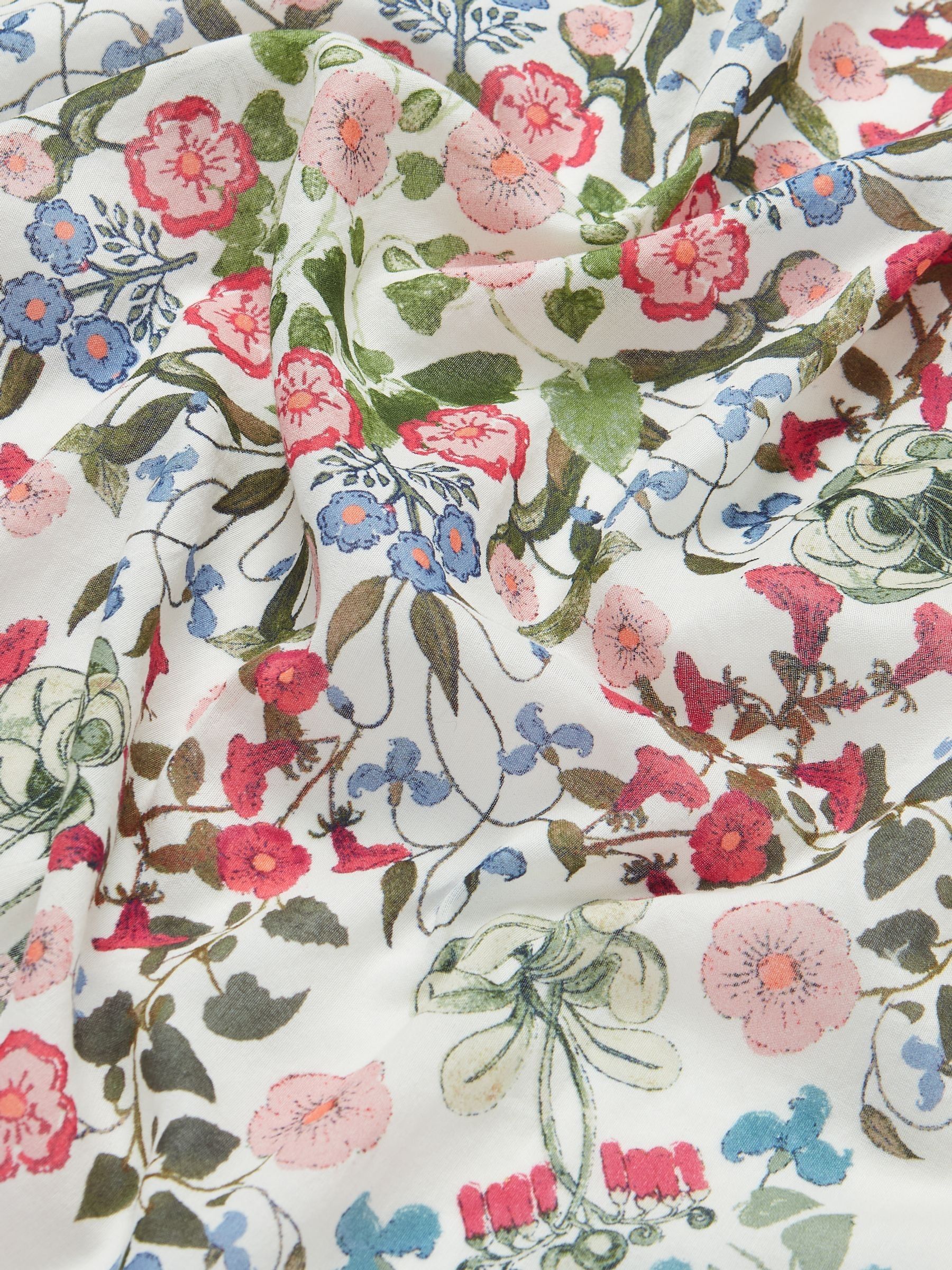 Accessorise the spring and summer months with the Kensington scarf. Lightweight cotton makes it supremely soft and enduring, while the versatile square shape opens up a variety of styling opportunities. Available in prints hand-drawn in house by our print team. It's like a wearable work of art. 60cm x 60cm Cotton Lightweight Hand-drawn print