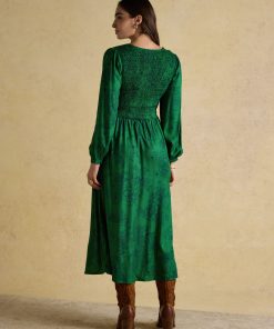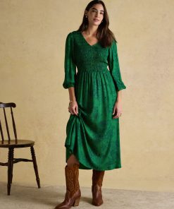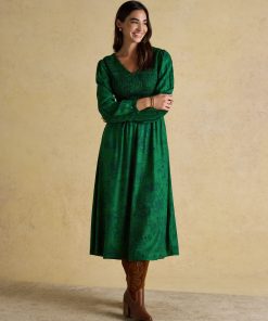 A new addition to your dress collection, the Lilliana is a perfect style to keep in your wardrobe year-round. It's made from viscose, falls to a midi length and has a flattering gathered waistband. The long sleeves with button cuffs and v-neck makes it easy to layer under knits if needed, while the shirred bodice enhances the look and comfort of the dress. Finished with pockets in the side seams and a hand-drawn print. Midi length V-neck Long sleeves with button fastenings Gathered waistband Shirred bodice Pockets in the side seams
