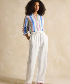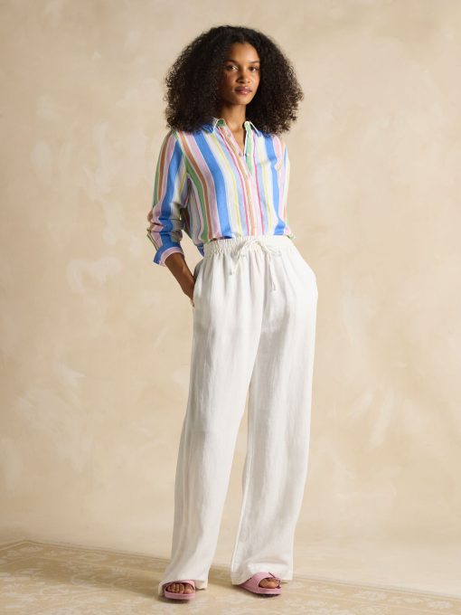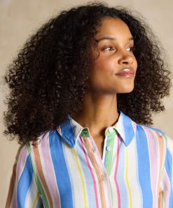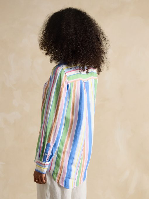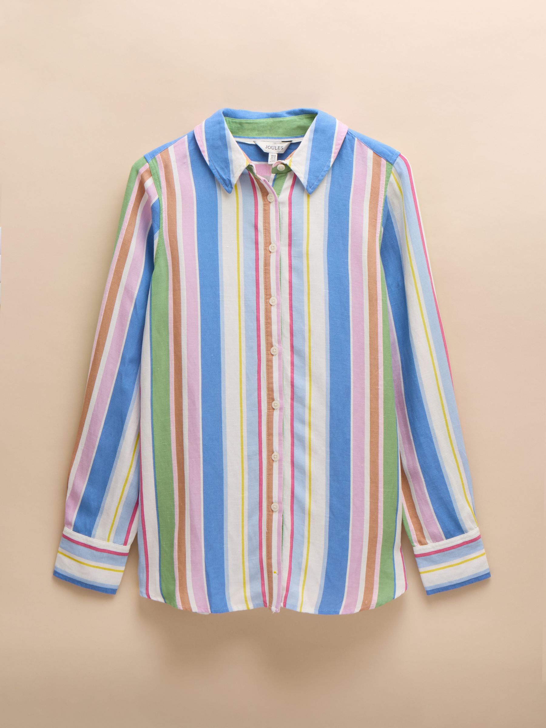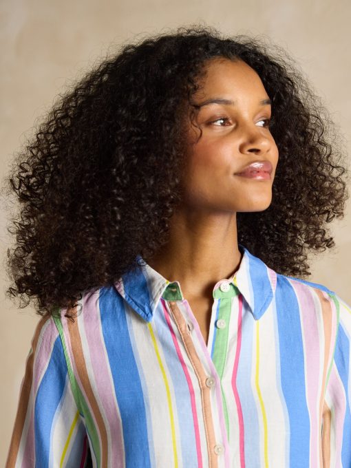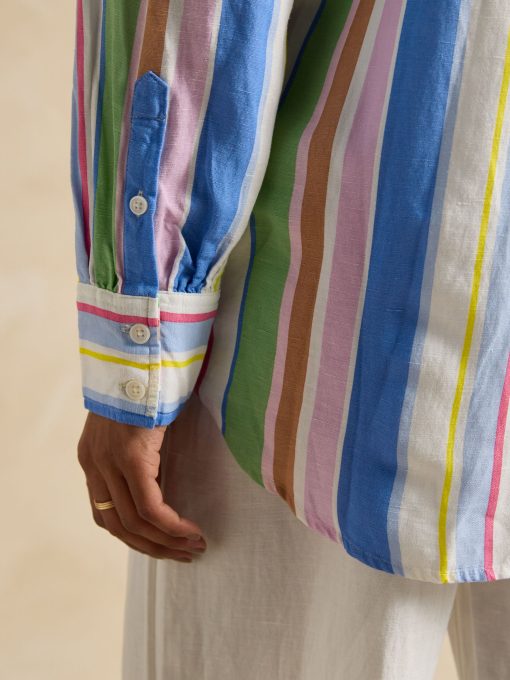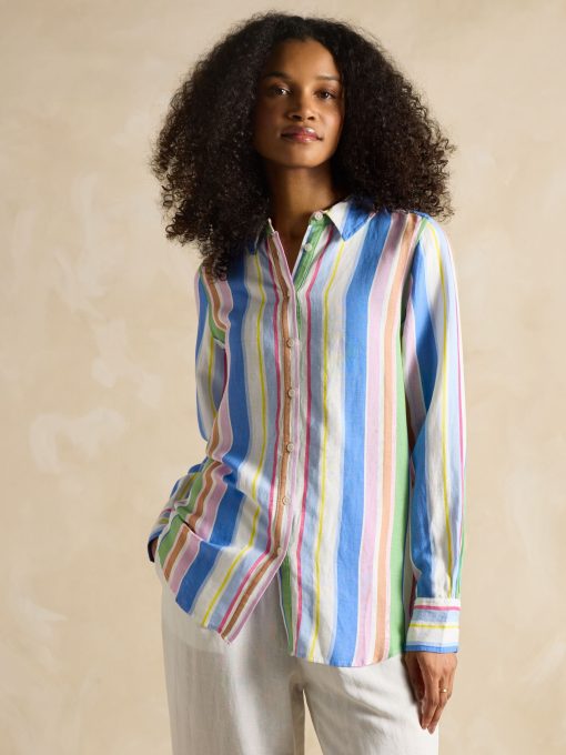 In a quality linen and viscose blend, the Maeva shirt is made for summer. Whether it's styled over your swimwear for an effortless beach look, or elevated with a skirt or shorts, it's the versatile piece your wardrobe needs this season. It has a flattering dropped curved hem, a button down fastening and button cuffs to allow you to keep things more casual. It's finished with a box pleat and a hanging loop to the back. Button down fastening Button cuffs Dropped curved hem Collar Box pleat and hanging loop to the back
