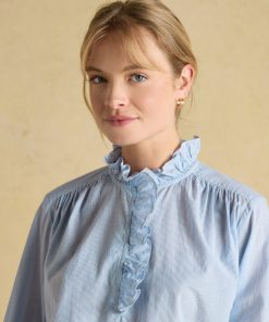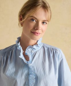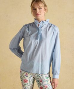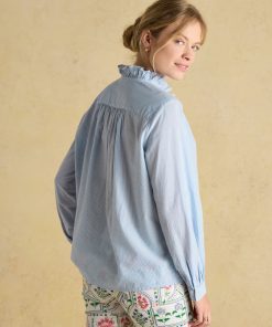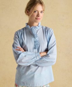 The Melanie blouse will be a timeless piece in your wardrobe that you'll come to rely on for any affair. It's been lovingly crafted from quality cotton voile for a lightweight feel. The concealed button placket allows for versatile styling and has an elegant frilled trim which extends to the neckline and will look great peeking out from a layered-on sweatshirt or knit. It has long sleeves with button cuffs and gentle gathering to the shoulders, cuffs and back. This is a style that can stay with you all year round. Cotton voile Woven Lightweight Long sleeves with button cuffs Concealed button placket Frill trim to the placket and neckline Gentle gathering to the shoulders, cuffs and back
