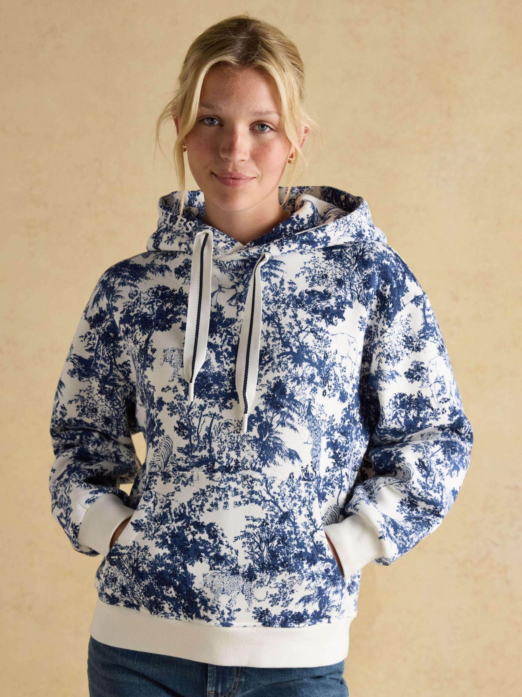 Joules Women’s Milbourne Blue & Cream Safari Hoodie | Blue & Cream Safari