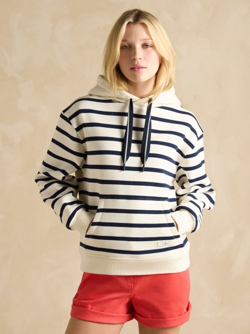 Joules Women’s Milbourne Navy & White Striped Cotton Rich Hoodie | Navy & White Striped Cotton Rich