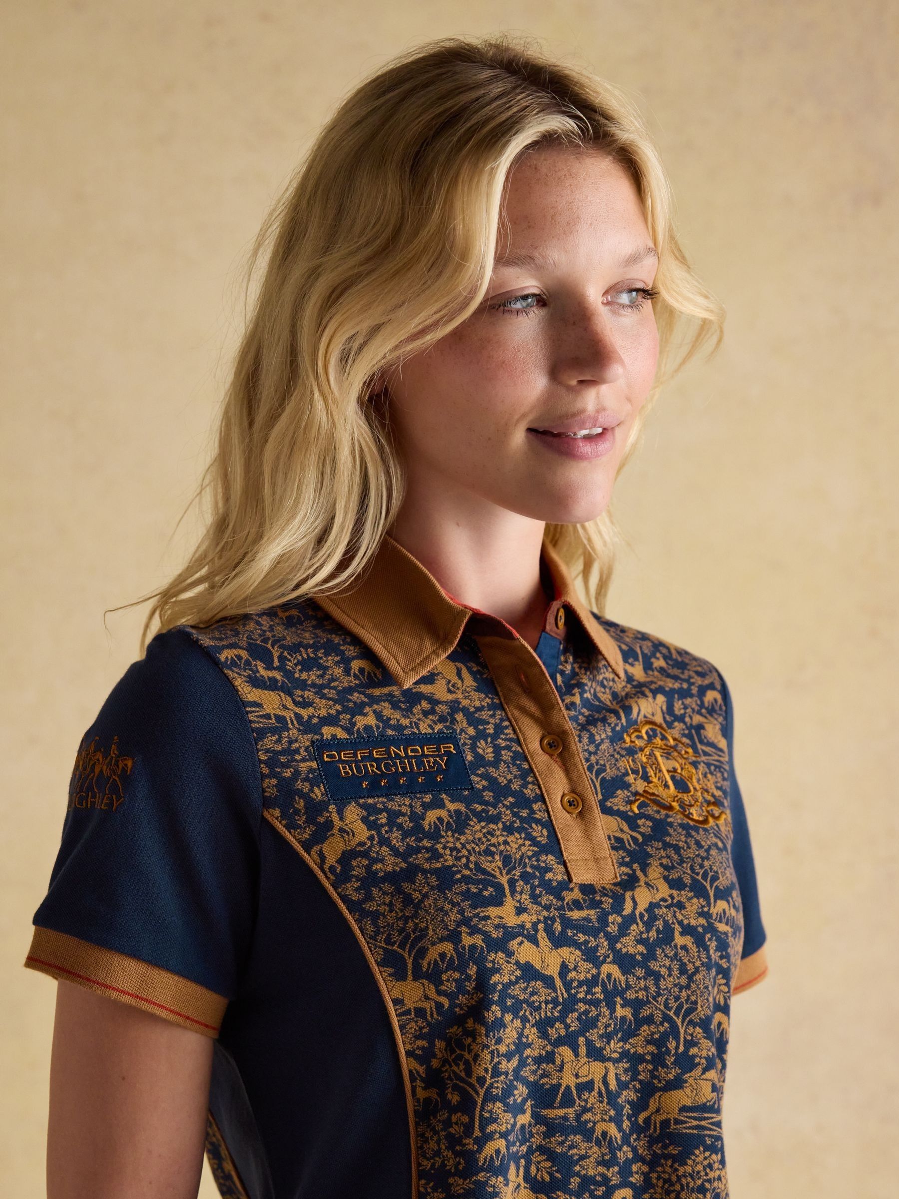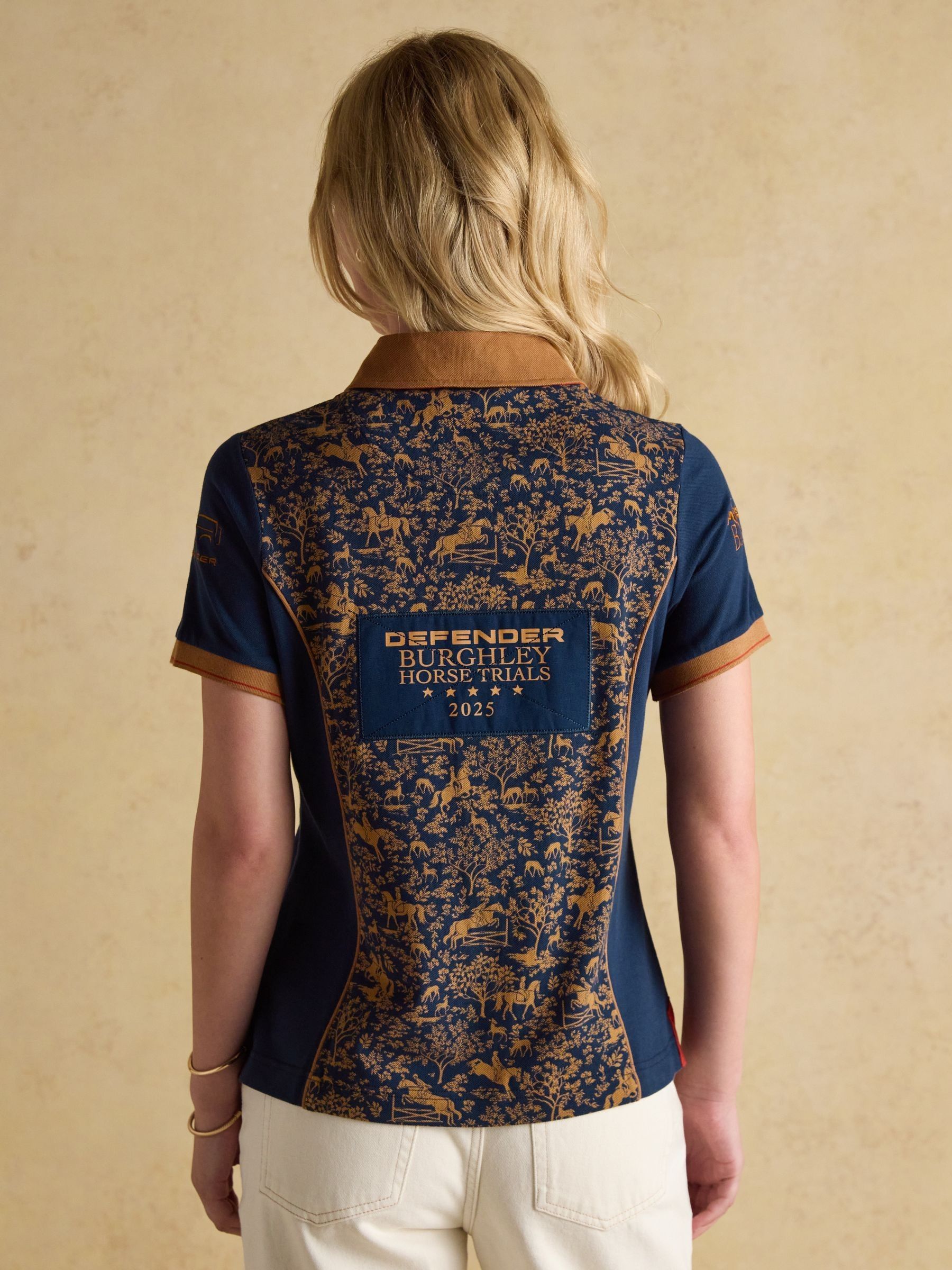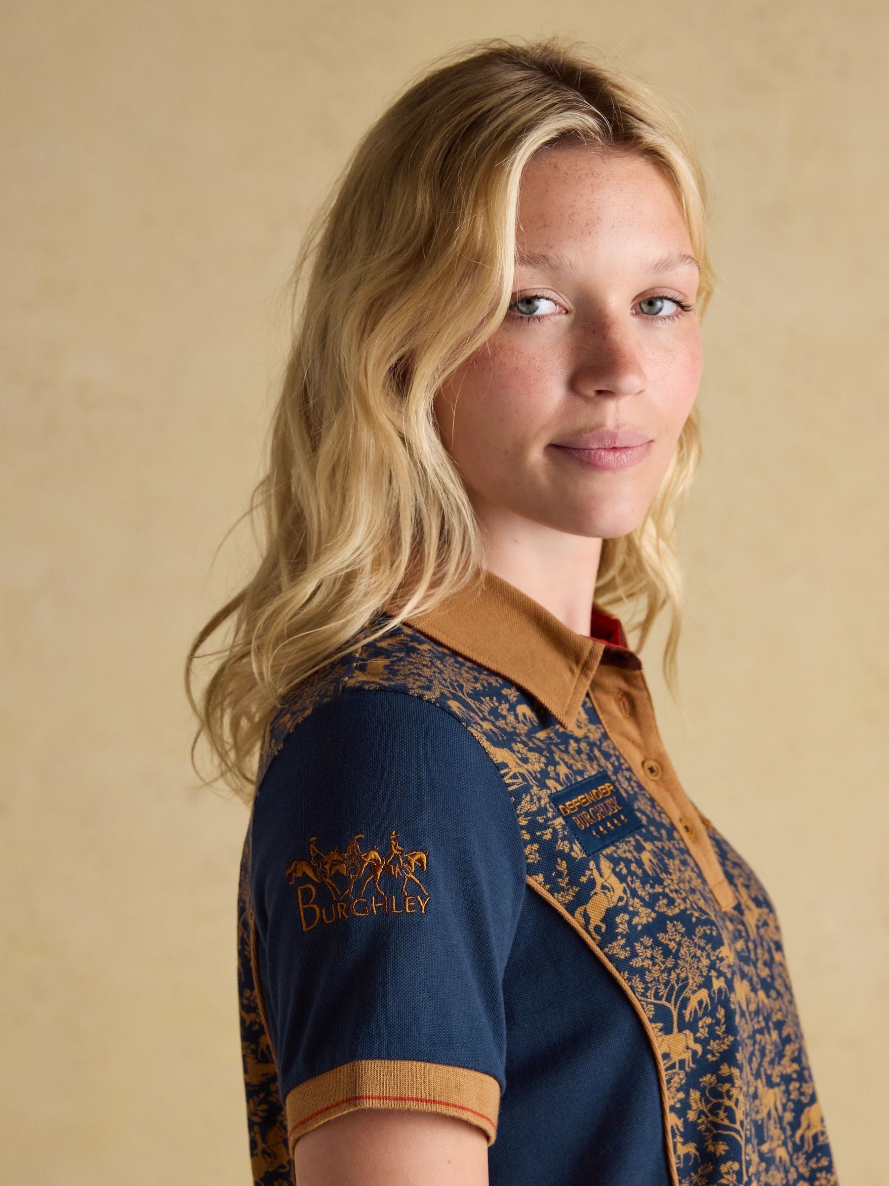 New for this year's Burghley Horse Trials collection is this beautiful printed women's polo shirt. Adding a distinctive Joules twist, it's adorned with a hand-drawn print which depicts a series of show jumping horses as a nod to this beloved equestrian event. The polo is crafted from breathable cotton and has short sleeves, a collar, a button placket and side splits. Event embroidery can be found on the chest, sleeves and back, as well as a contrasting coloured sash to the front. It might be new for 2025, but it's a true love forever piece. Part of the official Burghley Horse Trials collection. Short sleeves Button placket Twill collar stand, and undercollar Event embroidery to the chest, sleeves and back Hand-drawn equestrian print Side splits Contrast the colour sash to the front