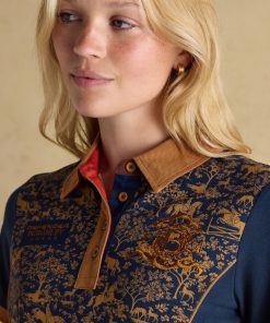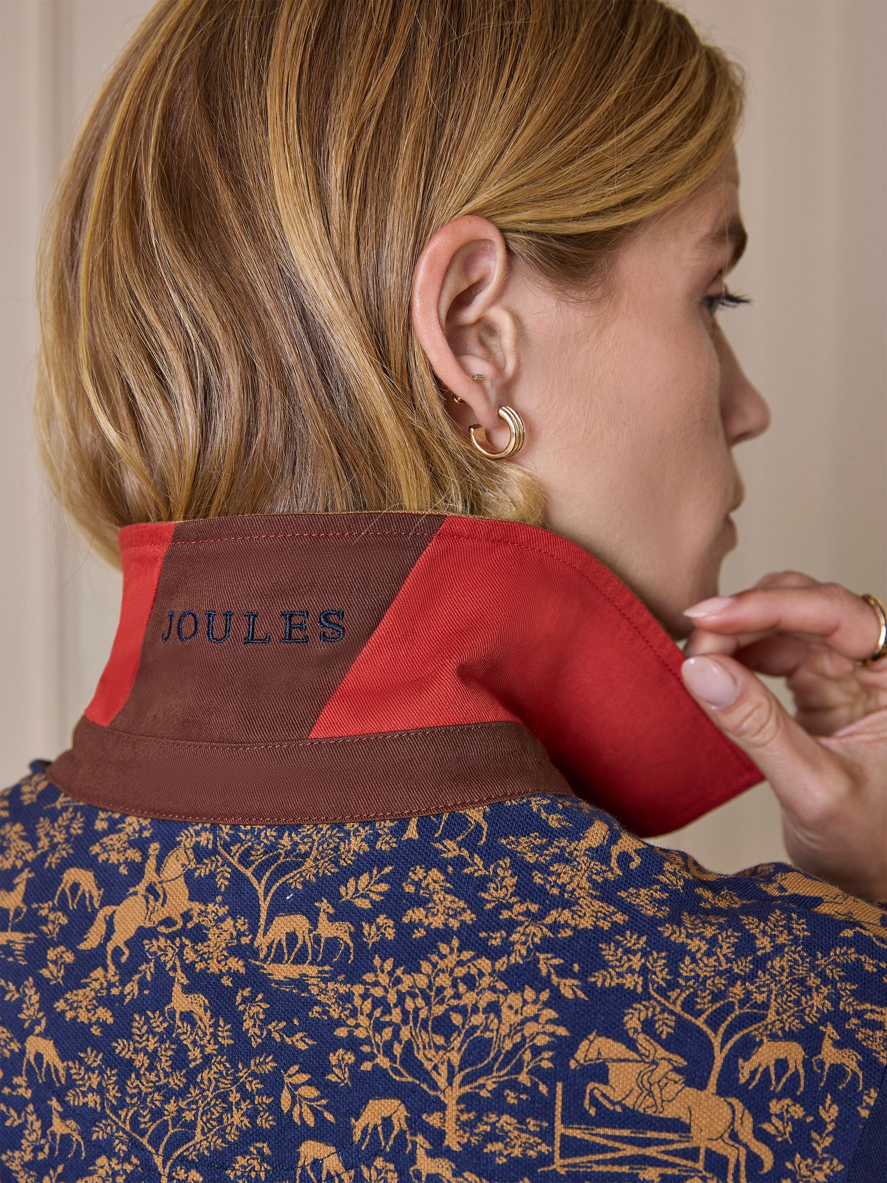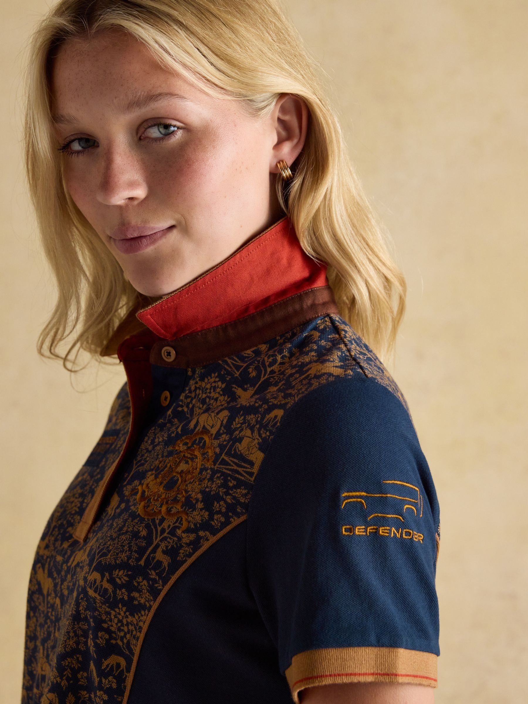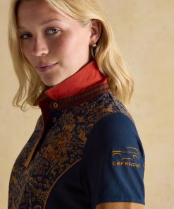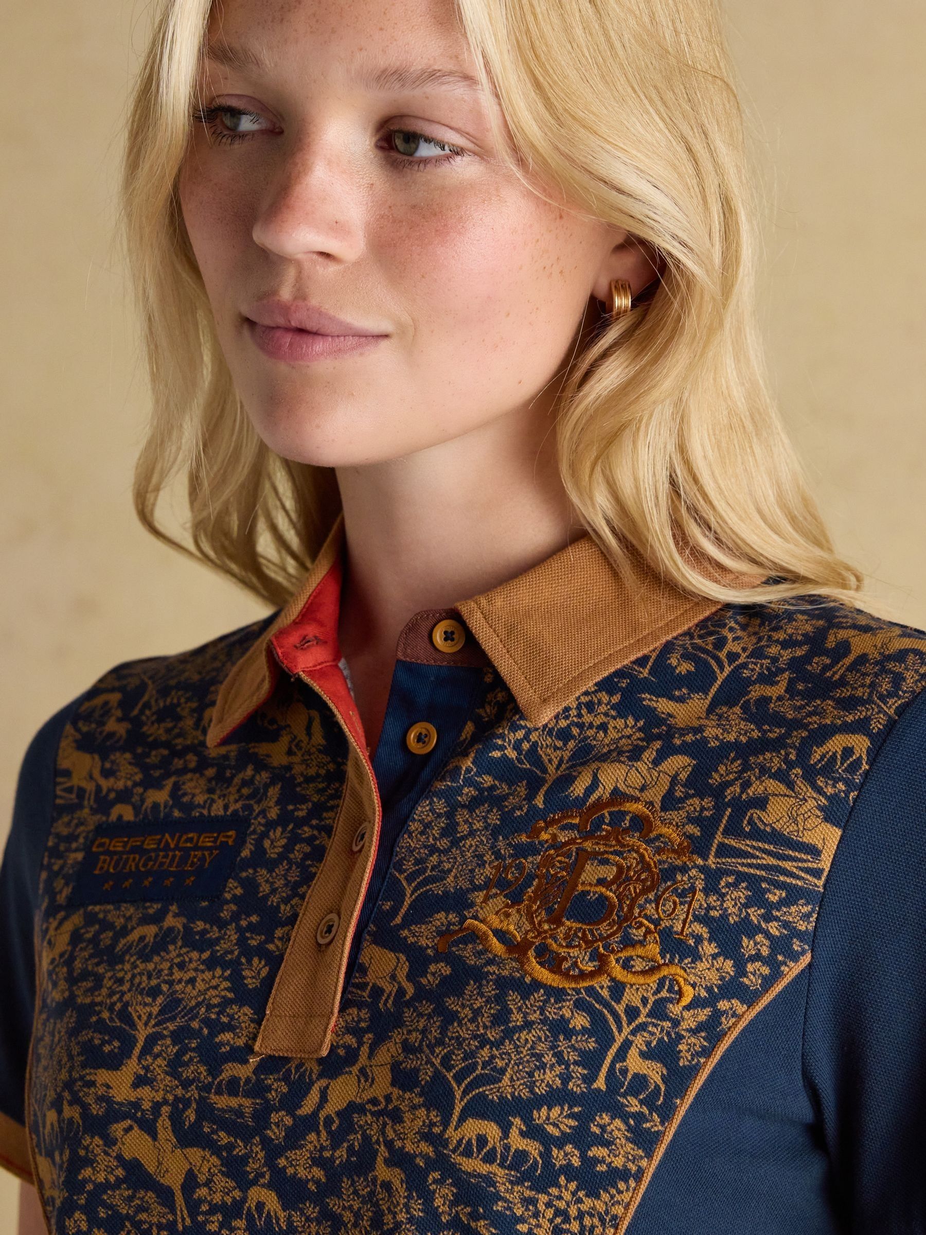 New for this year's Burghley Horse Trials collection is this beautiful printed women's polo shirt. Adding a distinctive Joules twist, it's adorned with a hand-drawn print which depicts a series of show jumping horses as a nod to this beloved equestrian event. The polo is crafted from breathable cotton and has short sleeves, a collar, a button placket and side splits. Event embroidery can be found on the chest, sleeves and back, as well as a contrasting coloured sash to the front. It might be new for 2025, but it's a true love forever piece. Part of the official Burghley Horse Trials collection. Short sleeves Button placket Twill collar stand, and undercollar Event embroidery to the chest, sleeves and back Hand-drawn equestrian print Side splits Contrast the colour sash to the front