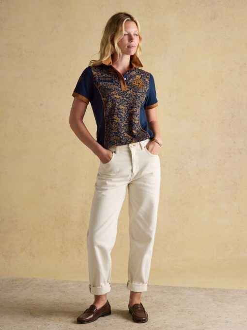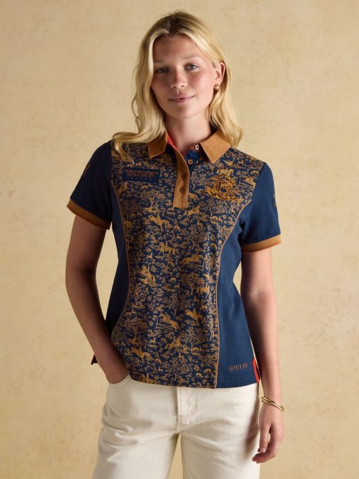 New for this year's Burghley Horse Trials collection is this beautiful printed women's polo shirt. Adding a distinctive Joules twist, it's adorned with a hand-drawn print which depicts a series of show jumping horses as a nod to this beloved equestrian event. The polo is crafted from breathable cotton and has short sleeves, a collar, a button placket and side splits. Event embroidery can be found on the chest, sleeves and back, as well as a contrasting coloured sash to the front. It might be new for 2025, but it's a true love forever piece. Part of the official Burghley Horse Trials collection. Short sleeves Button placket Twill collar stand, and undercollar Event embroidery to the chest, sleeves and back Hand-drawn equestrian print Side splits Contrast the colour sash to the front