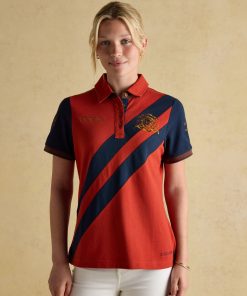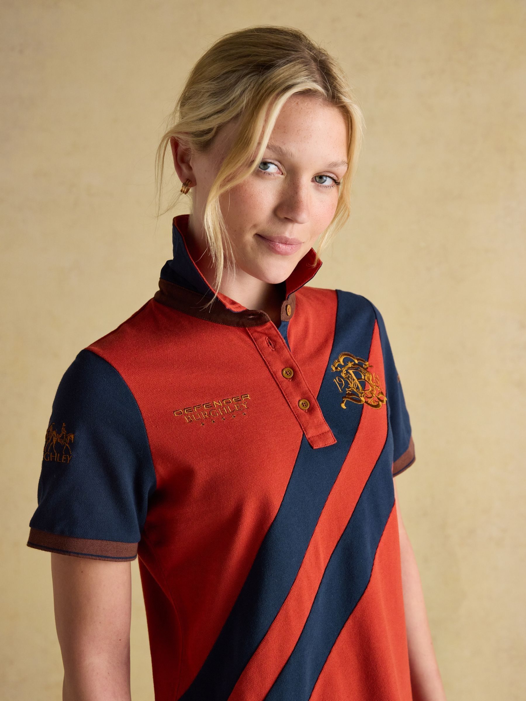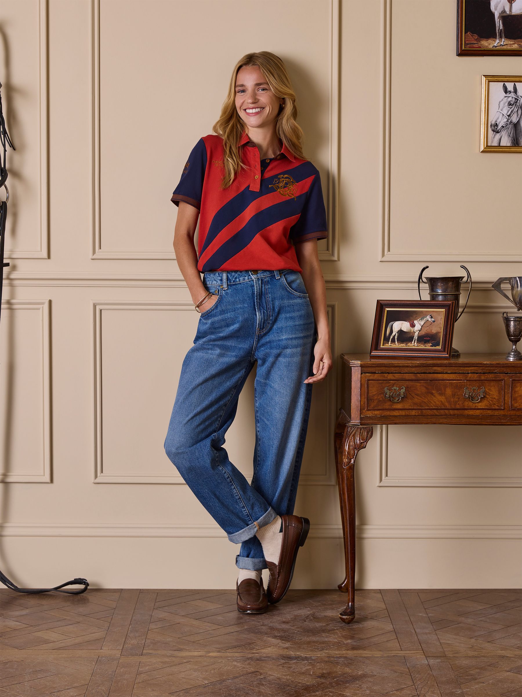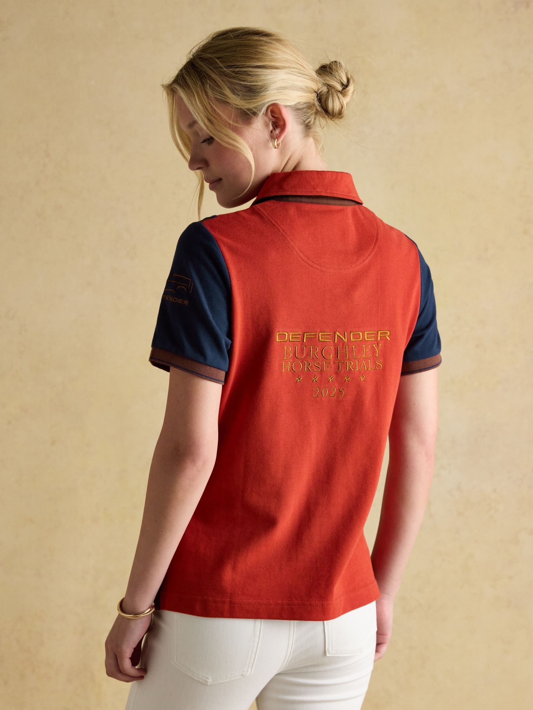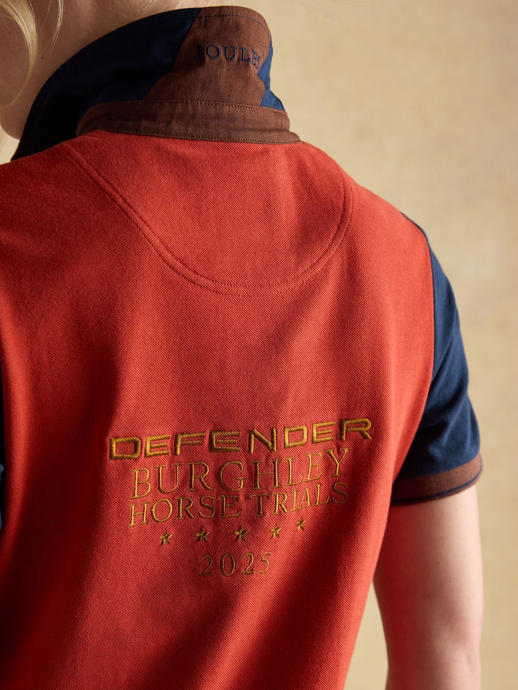 Show your love and support for the Burghley Horse Trials with the official women's polo shirt of 2025. The perfect thing to wear if you're attending this year's event, it has an updated colour palette which sits back with the whole collection. It has short sleeves, a button placket, and even embroidery on the chest, sleeves, and back. The quality can be seen through the fabric, the twill collar, the undercollar, and the intricate details. Wear it for the event, and love it forever. Part of the official Burghley Horse Trials collection by Joules. 100% Cotton Short sleeves Button placket Twill collar, stand, and undercollar Event embroidery to the chest, sleeve, and outer back neck Side splits