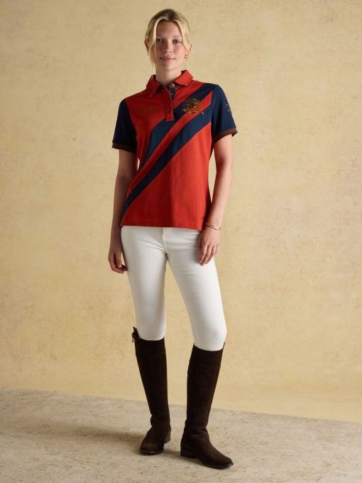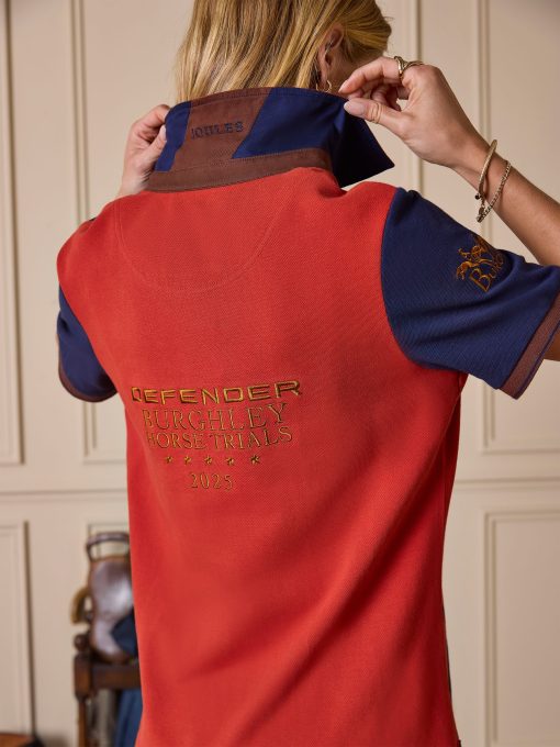 Show your love and support for the Burghley Horse Trials with the official women's polo shirt of 2025. The perfect thing to wear if you're attending this year's event, it has an updated colour palette which sits back with the whole collection. It has short sleeves, a button placket, and even embroidery on the chest, sleeves, and back. The quality can be seen through the fabric, the twill collar, the undercollar, and the intricate details. Wear it for the event, and love it forever. Part of the official Burghley Horse Trials collection by Joules. 100% Cotton Short sleeves Button placket Twill collar, stand, and undercollar Event embroidery to the chest, sleeve, and outer back neck Side splits