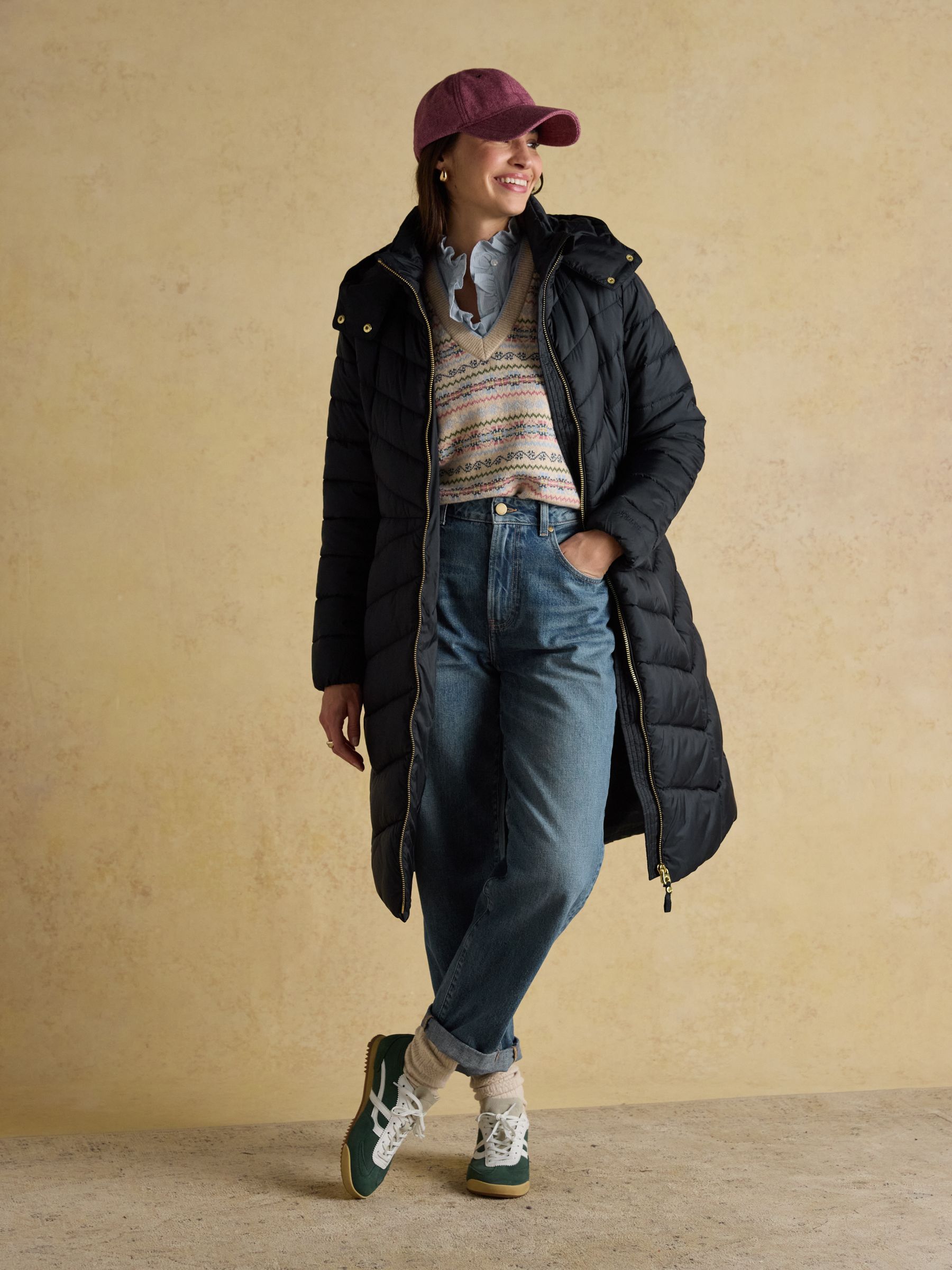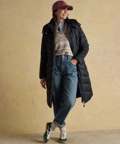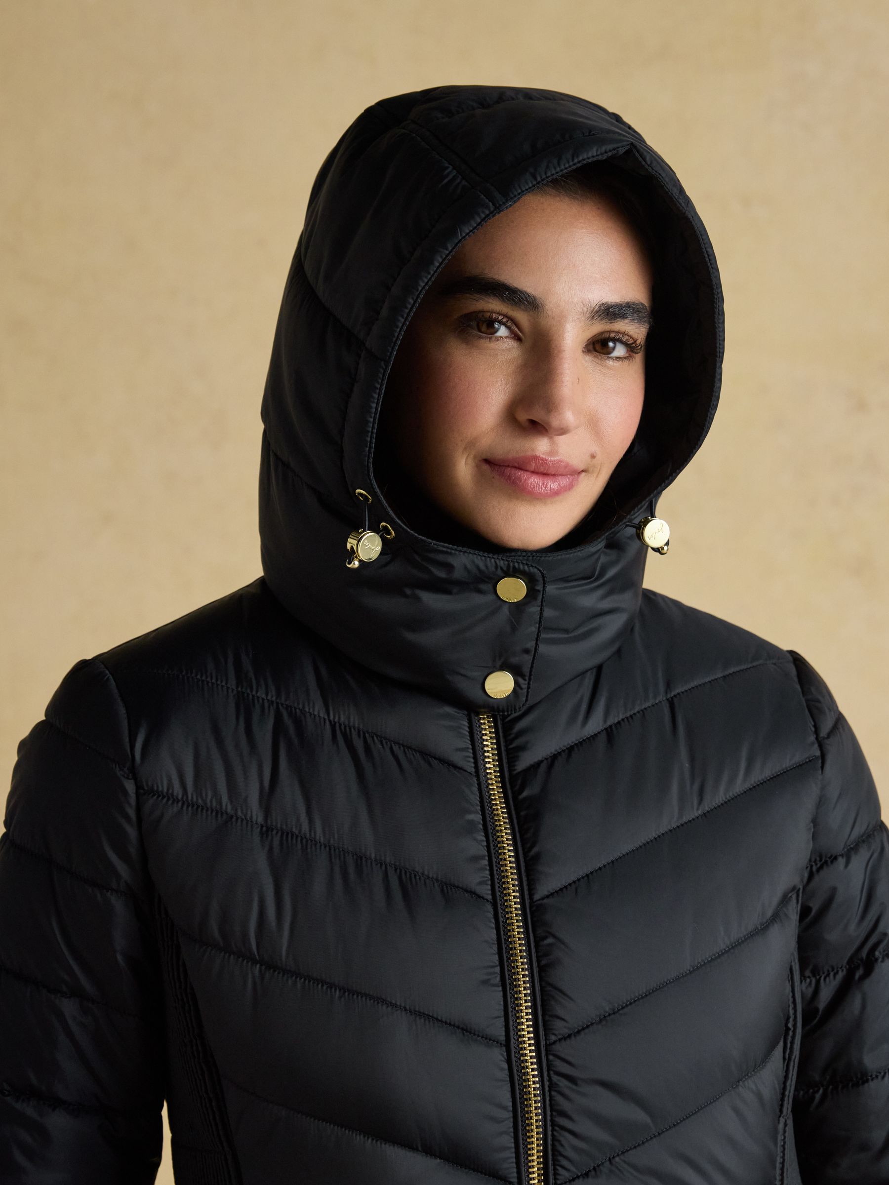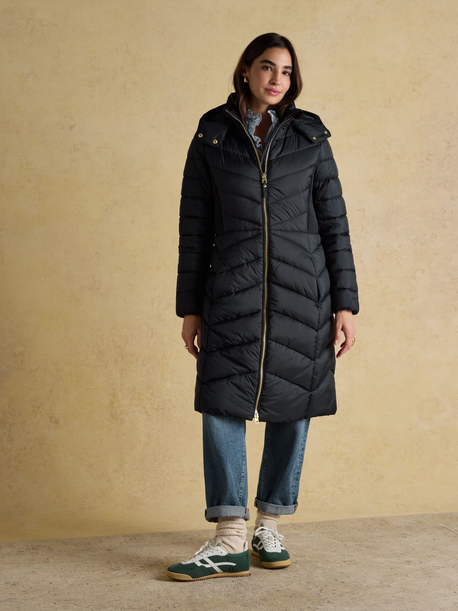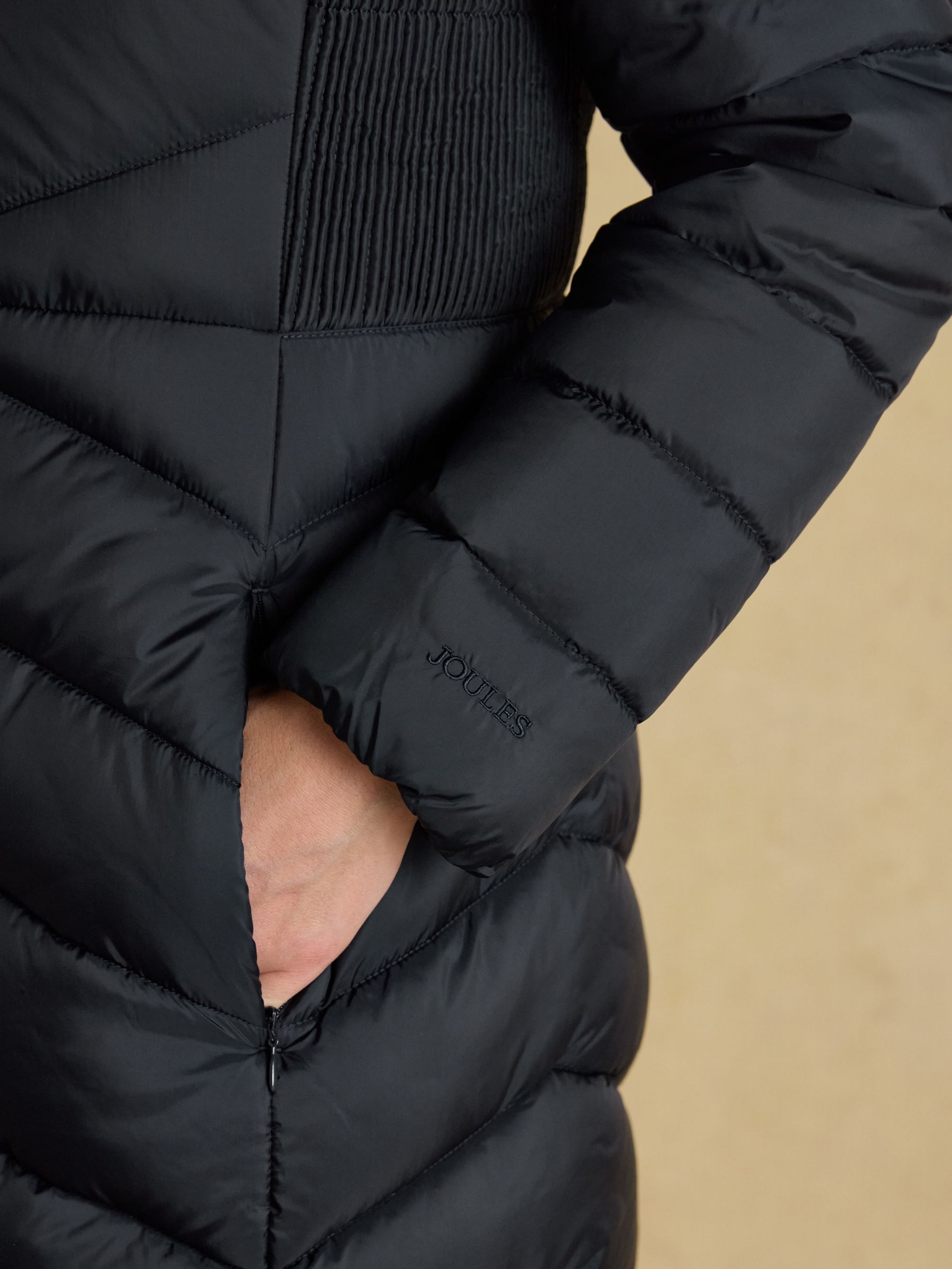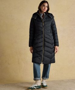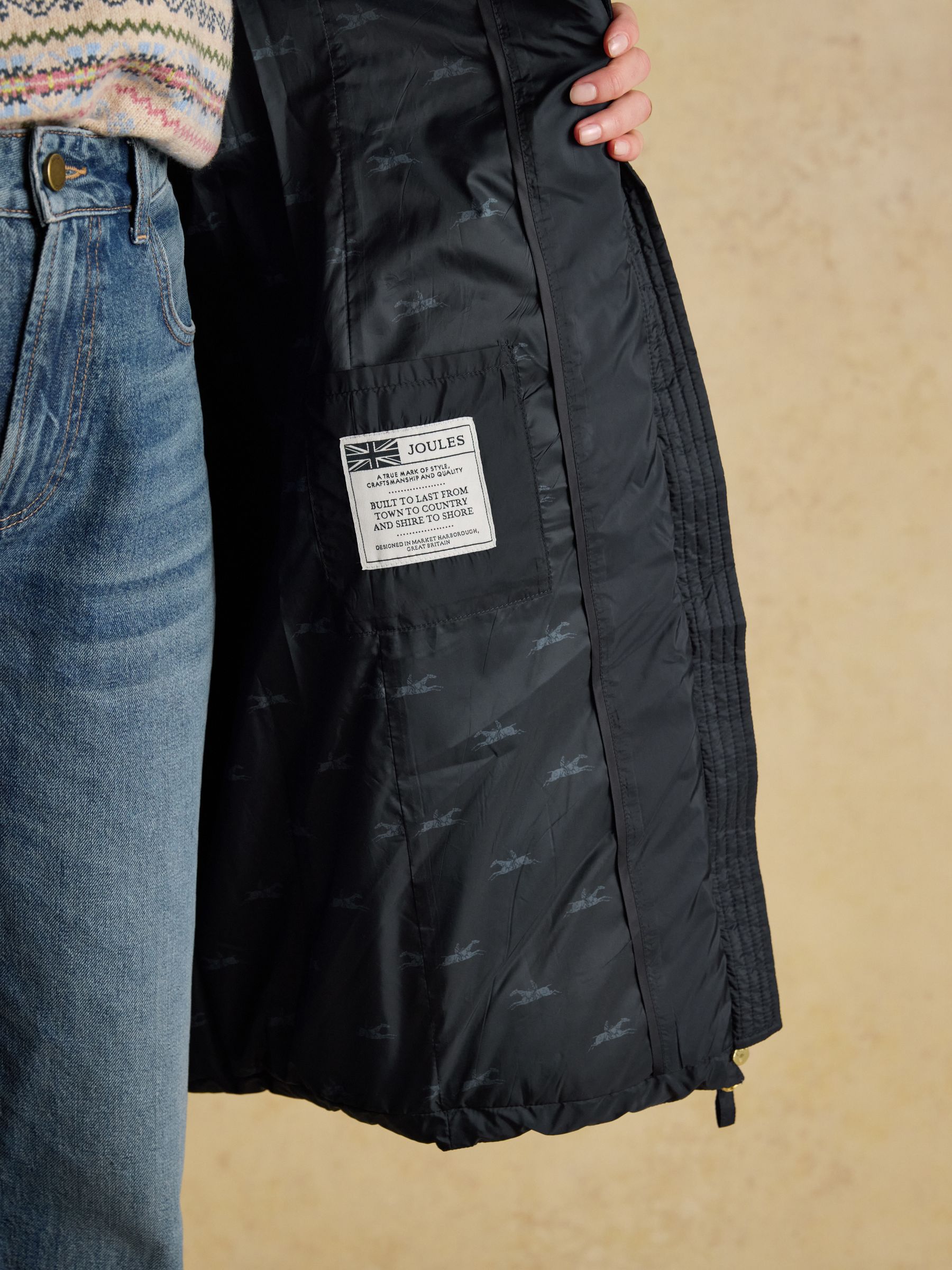 Joules Women’s Pembury Navy Showerproof Longline Padded Coat With Hood | Navy