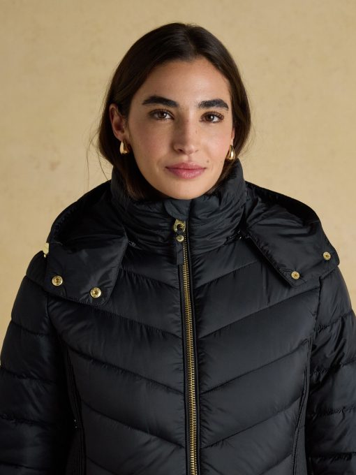 Joules Women’s Pembury Navy Showerproof Longline Padded Coat With Hood | Navy