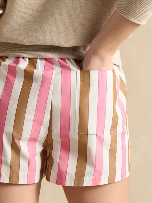 These are shorts you'll spend all summer in. Their easy pull-on design and effortlessly cool look will make them your most worn pair. They're made from light and breezy 100% cotton, have an elasticated waist so you can choose where they sit on your waist and have a flattering a-line shape. Slip-in side pockets add to their laid-back appeal, while the candy stripes speak to the summer season. Finished with a split hem and a single back pocket. Style with the matching shirt available separately, or with a graphic short sleeve t-shirt. 100% cotton. A-line shape. Elasticated waistband. Side pockets with printed pocket bags. Back pocket. Split hem.