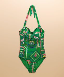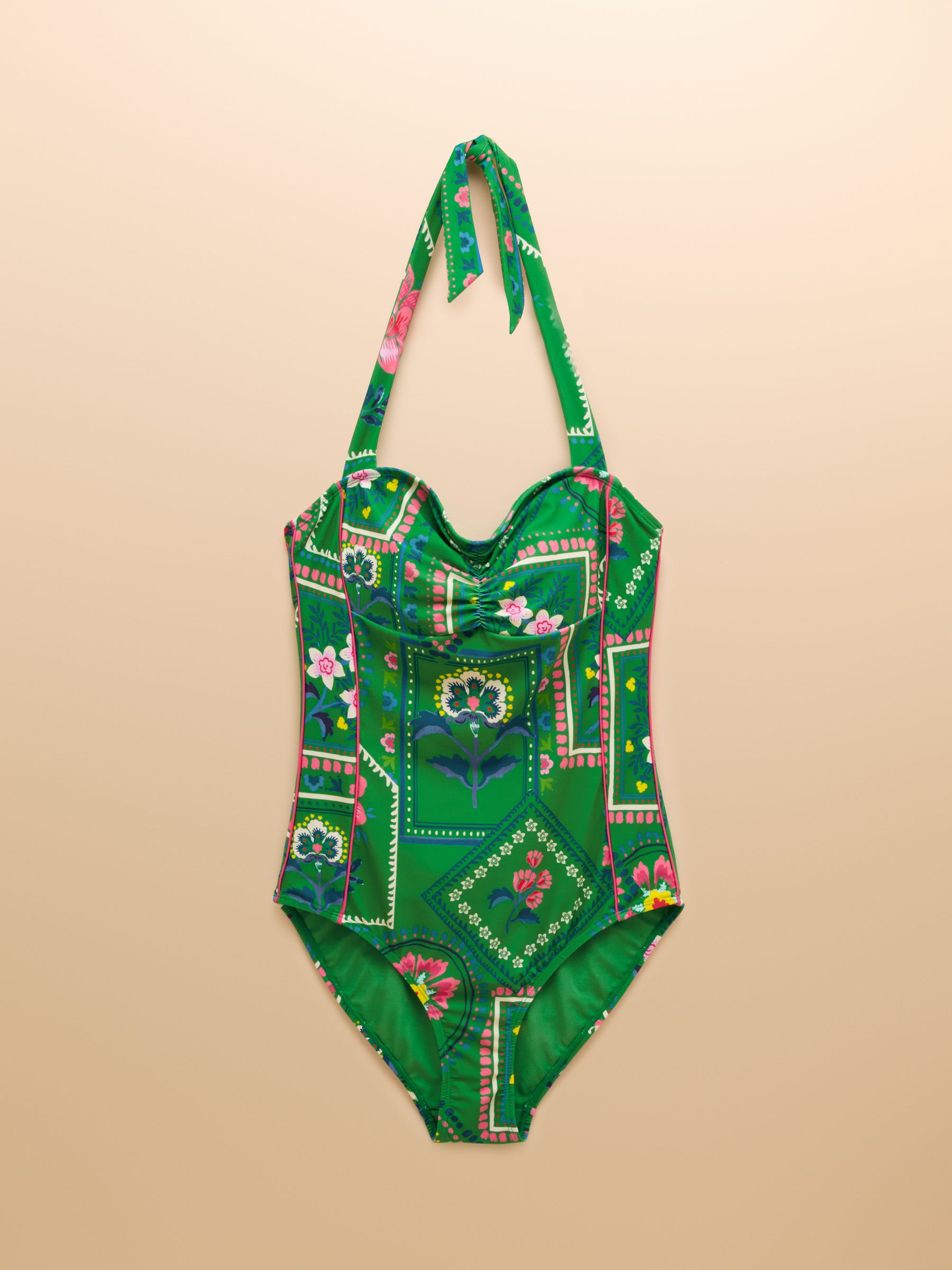 Planning on taking a dip? Our beautifully patterned Poppy swimsuit was designed with you in mind and in our opinion ticks all the boxes. It’s crafted with a flattering halter neckline that gathers into the middle of the sweetheart bodice to sculpt your silhouette, and has adjustable ties for comfort and ease. One piece Patterned Classic fit Halter style Halterneck with adjustable tie fastenings Open back Sweetheart bodice with ruching