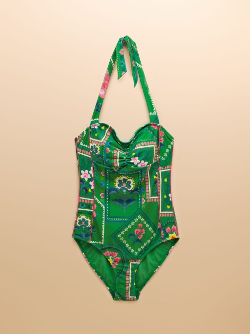 Planning on taking a dip? Our beautifully patterned Poppy swimsuit was designed with you in mind and in our opinion ticks all the boxes. It’s crafted with a flattering halter neckline that gathers into the middle of the sweetheart bodice to sculpt your silhouette, and has adjustable ties for comfort and ease. One piece Patterned Classic fit Halter style Halterneck with adjustable tie fastenings Open back Sweetheart bodice with ruching