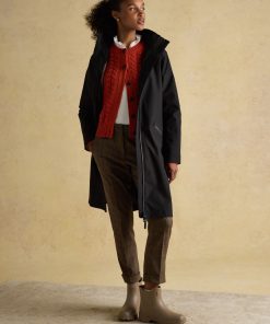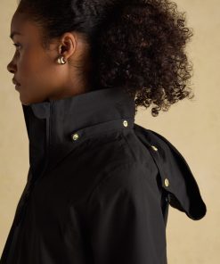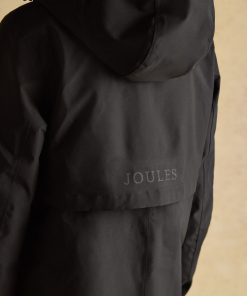 Joules Women’s Rainaway Black Lightweight Waterproof Longline Raincoat With Hood | Black