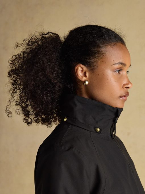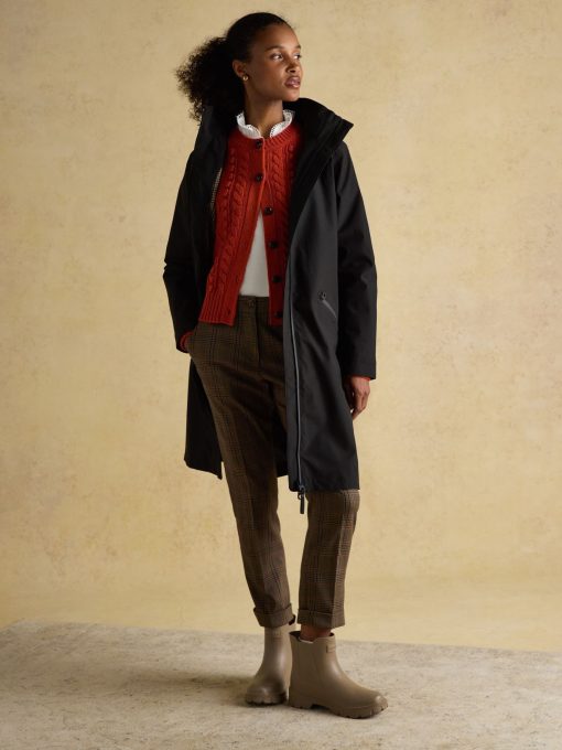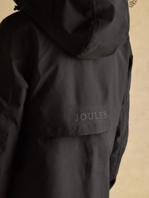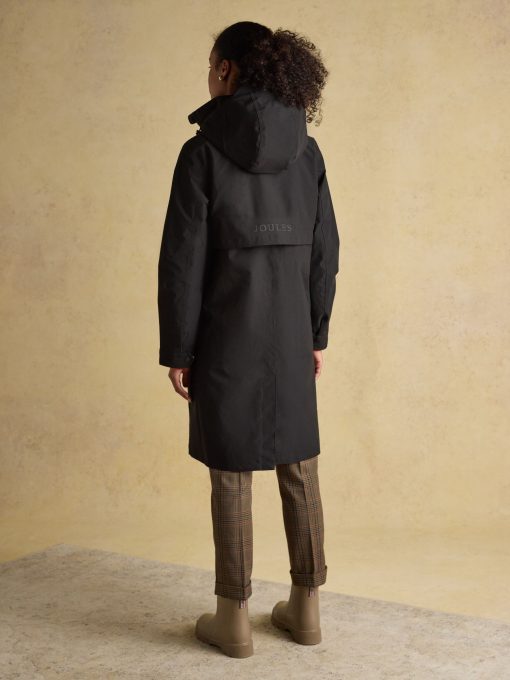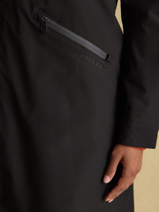 Joules Women’s Rainaway Black Lightweight Waterproof Longline Raincoat With Hood | Black