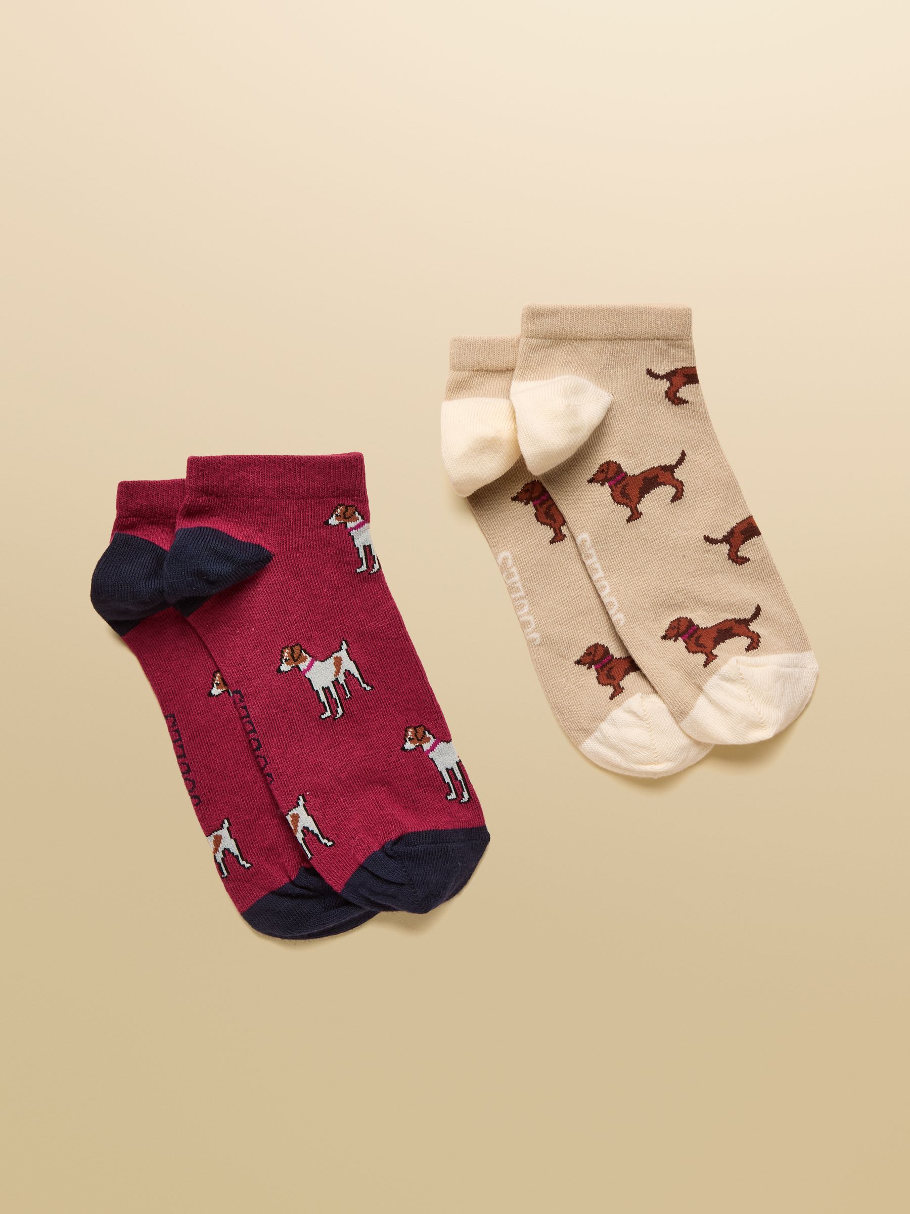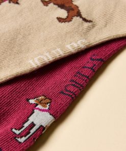 Joules Women’s Rilla Berry & Ecru Pack Of Two Trainer Socks | Berry & Ecru